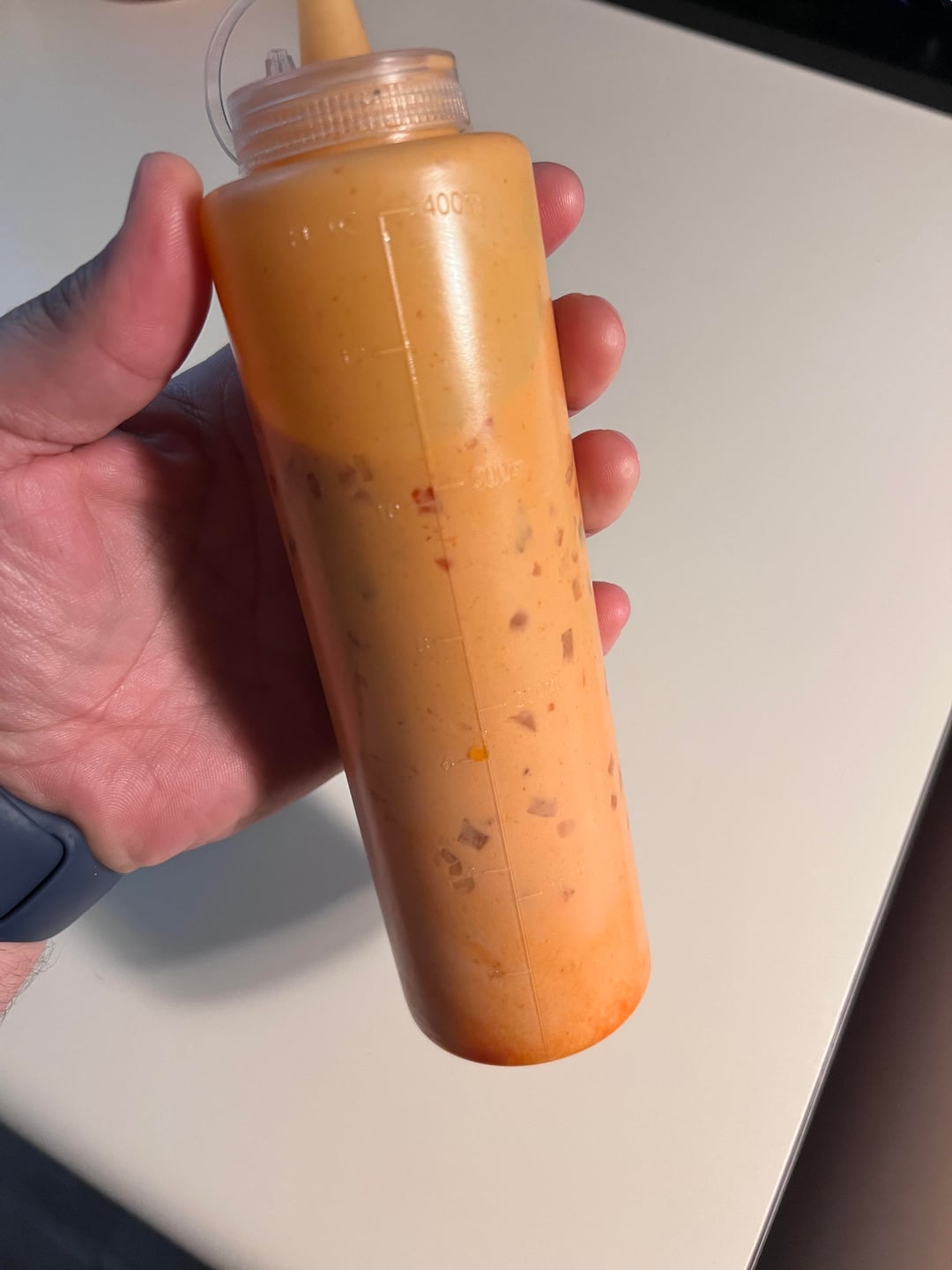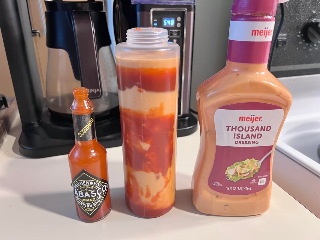 Months ago I combined Tabasco Scorpion with ranch (it is amazing – try it) and I recently had Thousand Island with a burger patty and forgot how good that dressing is on certain things. So I combined these and had it on tater tots tonight. It was tasty – not as good or as hot as the Scorpion Ranch. I am going to try it again tomorrow as the flavors combine together in the fridge overnight.