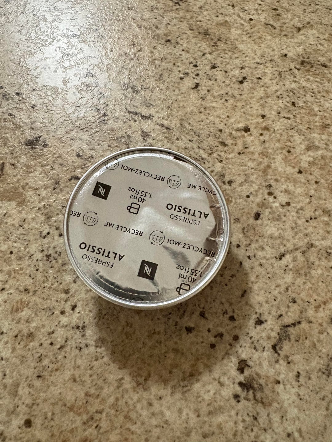 Hey there, so my nespresso has been brewing my girlfriends altissio weirdly the past few days. It brews perfectly fine but then… just keeps going, she ends up with about 4pm of espresso/water when they’re just supposed to brew 1.3oz. So it always ends up too watery. I think it’s gotta be an issue with the scanner in the machine but my full coffee pods brew just fine. Her pods are also not puffed up on the top like normal (pic for reference). Do any of you have advice for remedying this?