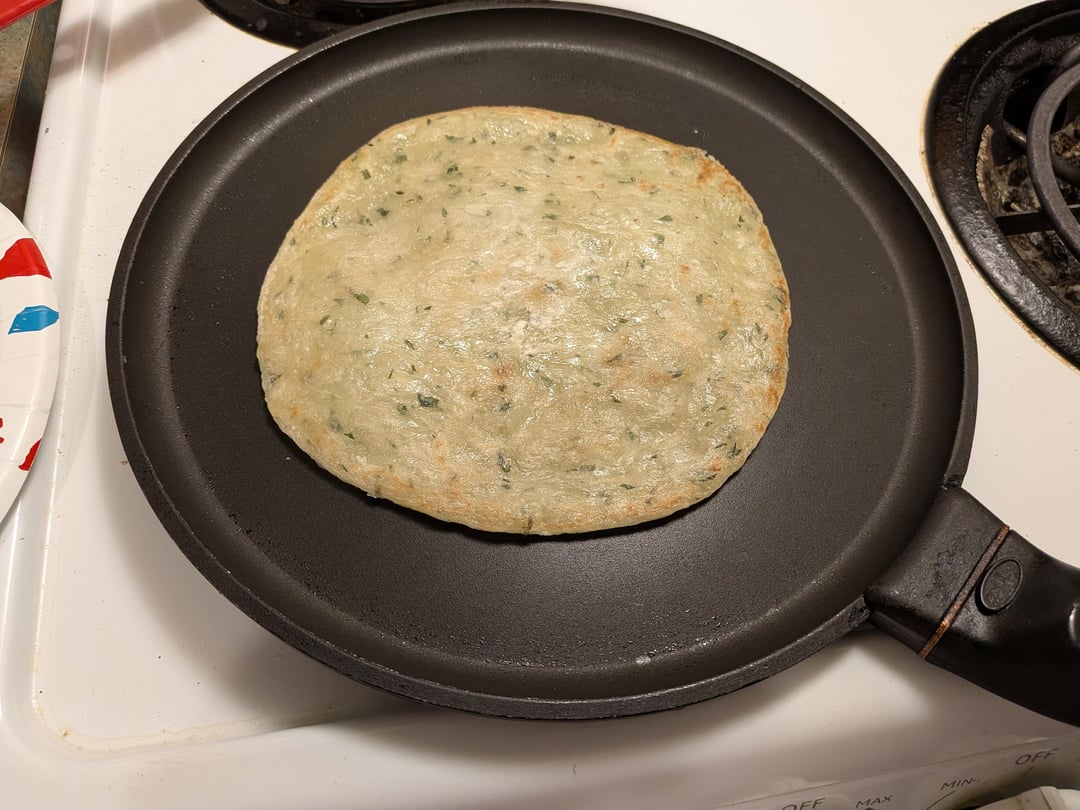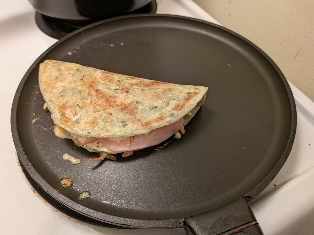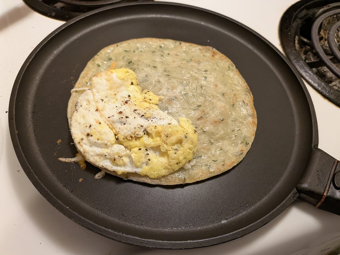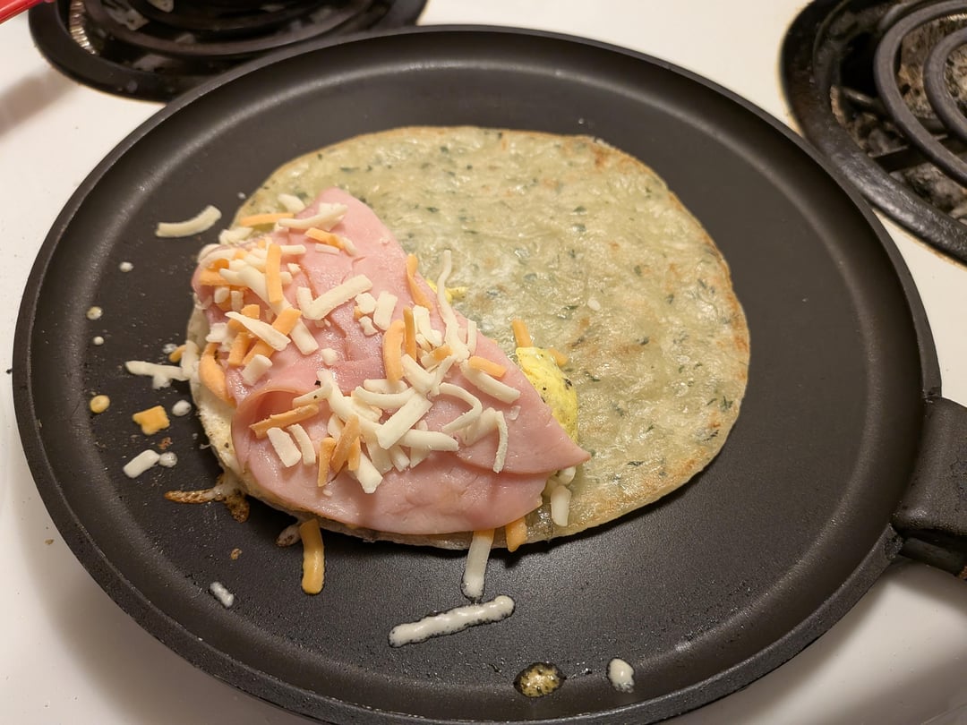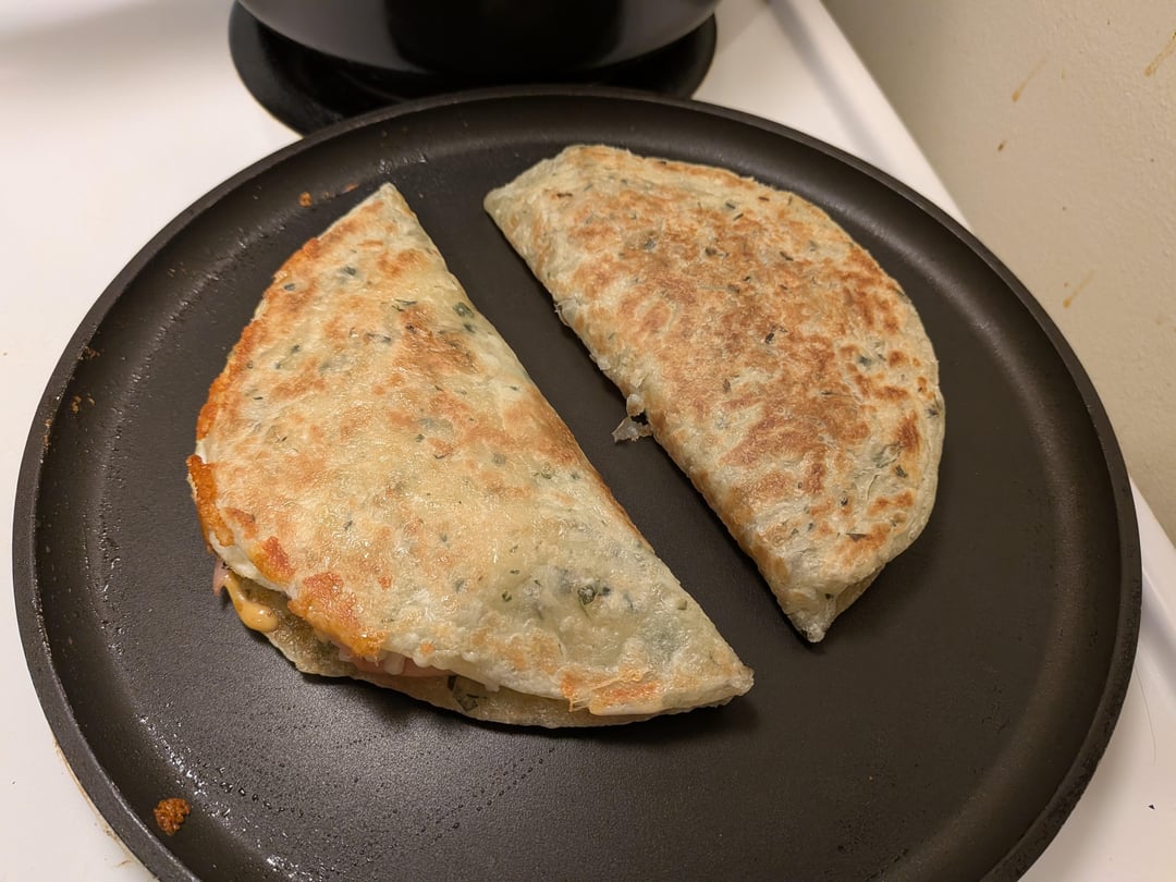 Ham Eggs and Cheese flatbread (Flaky Paratha) sandwiches.