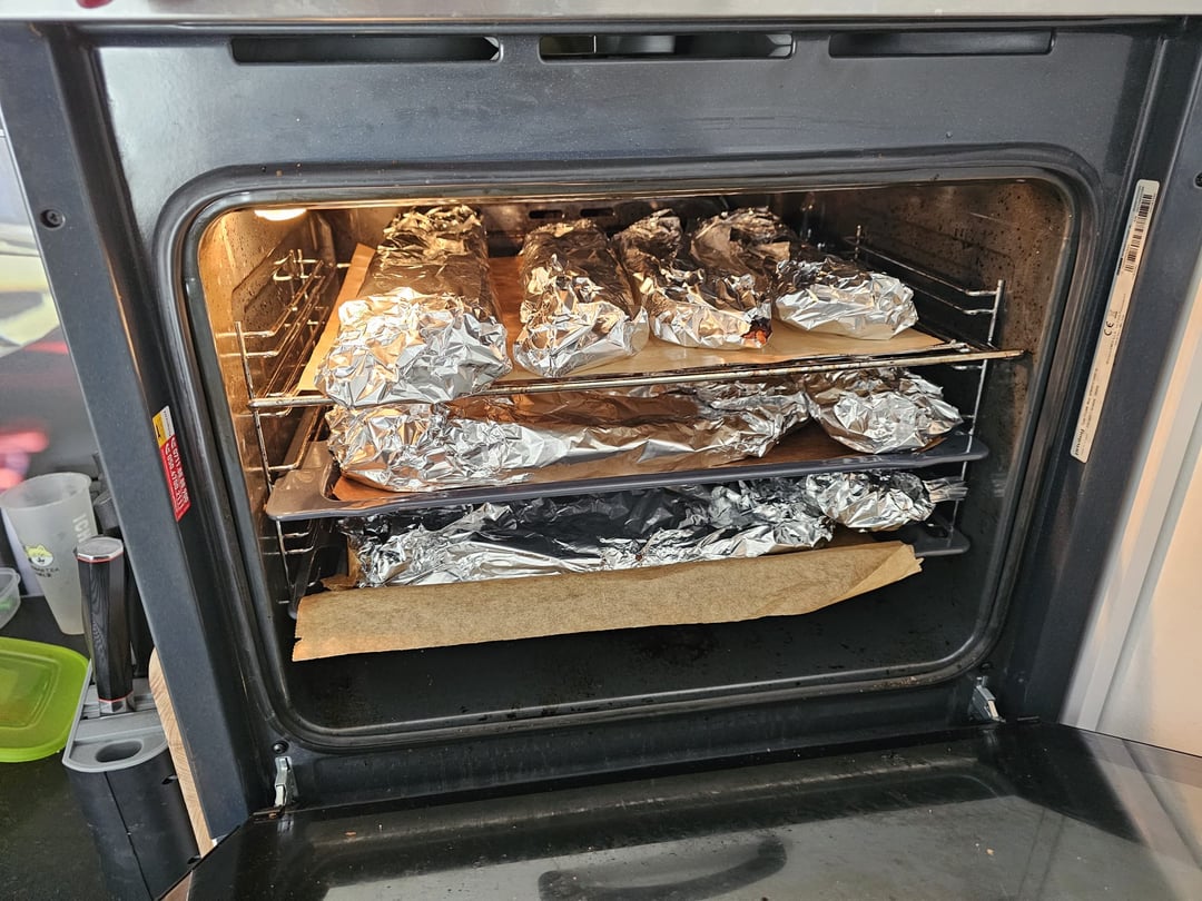 Just threw random spices together you find in magic dust (made it a bit on the spicey side). I added a bit of honey and butter to the tinfoil when finishing it off in the oven. To experiment with freezing i added butter to roughly half of it so i know if that makes it better or not when warming them up again.