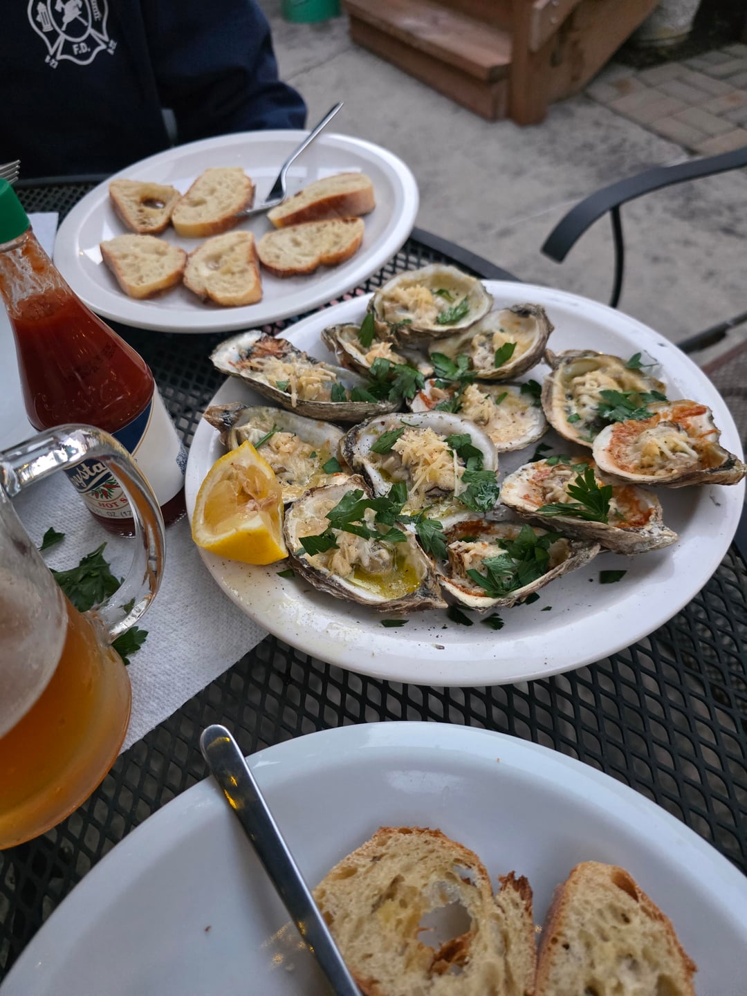 My brother had a gruesome surgery and requested a seafood dinner to help him recover. I made half-shell Olde Salt oysters, grilled oysters, beer-steamed mussels, and barbecue shrimp.