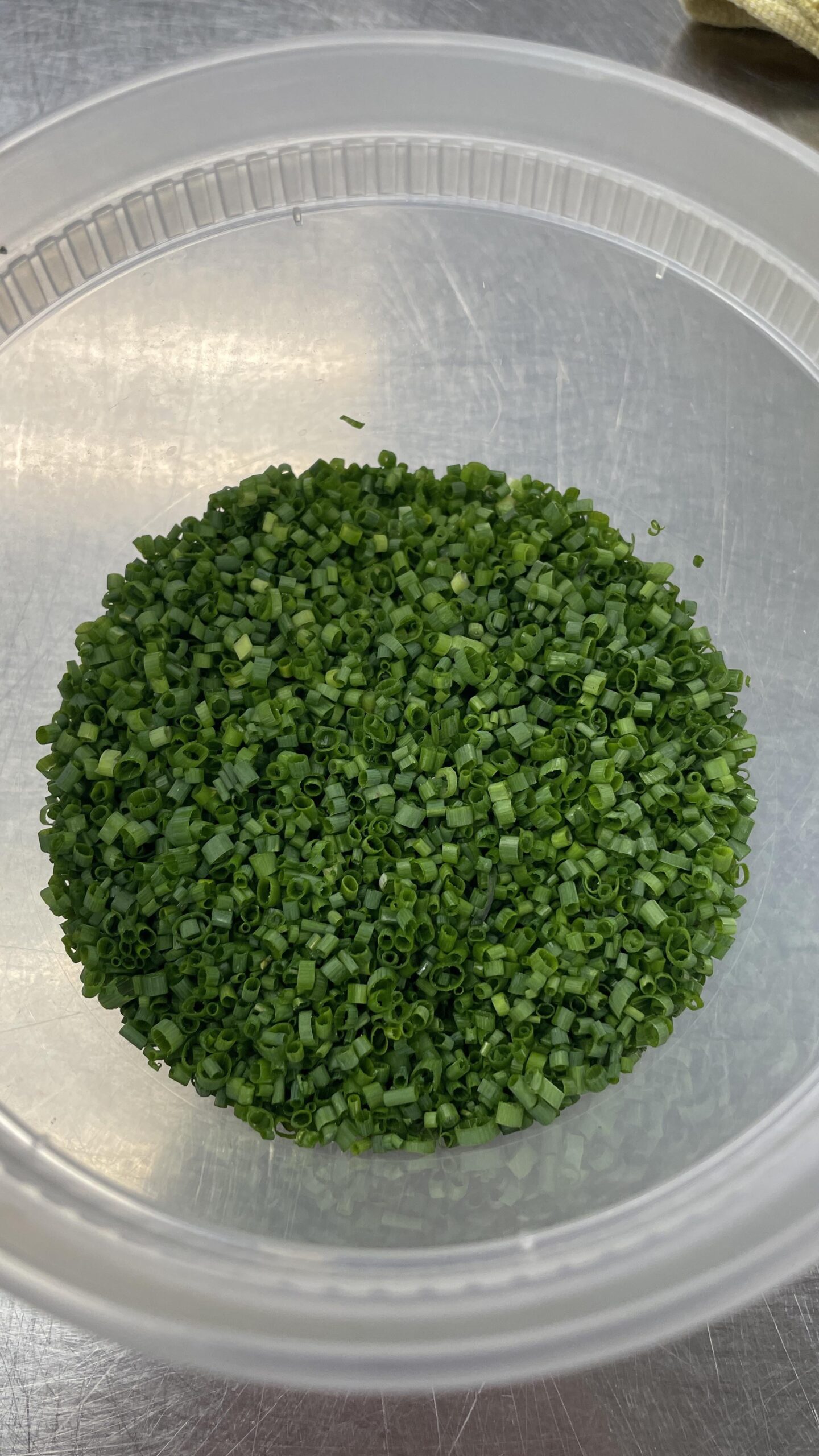 Huge Improvement. Consistency is better, but still plenty of room to improve, product quality is much better. Overall/median size seems roughly unchanged. Pare down your target size a bit, maybe 20% thinner. The chive marked target size should be the ceiling of your target. Pay extra care as you get towards the thinner end of chives as that’s where longer cuts will be most obvious and most unappealing. Cut length should never exceed diameter even towards the tip, whereas you have a few tunnels in the mix. Use a chix cloth to wrap your bundle to prevent the biased cuts you’re getting. Looks like you sharpened your knife; I’m seeing far fewer crushed/collapsed chives. Looks like you also culled out discolored/subpar chives.