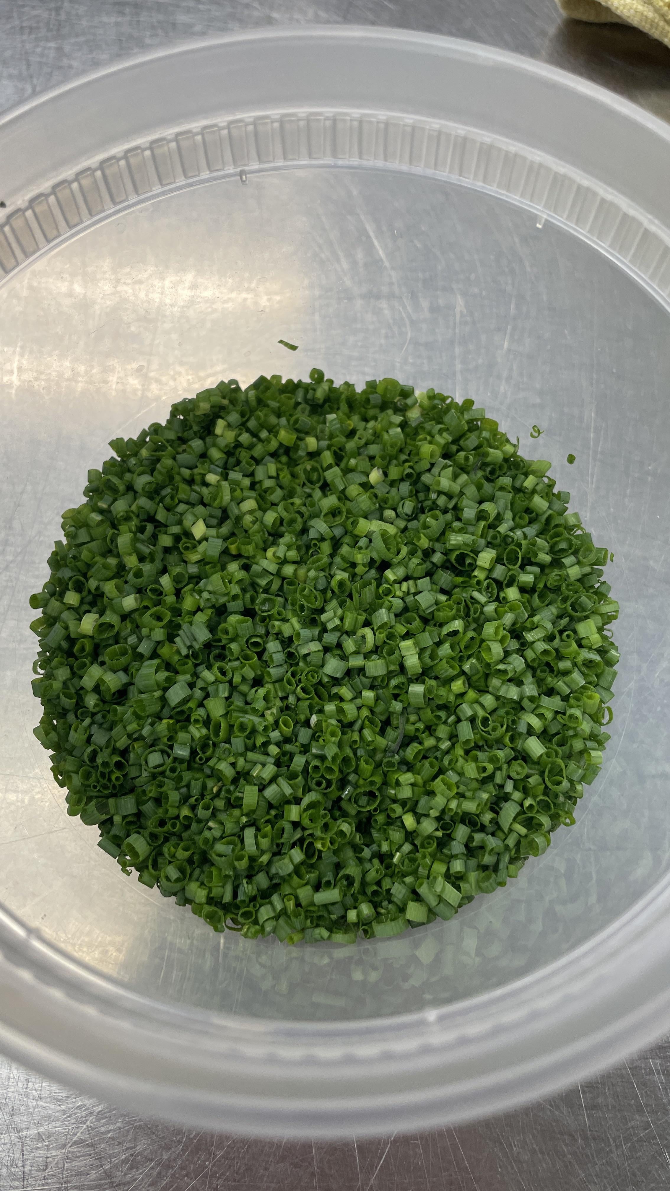 This way guarantees imperfection – but you have no way to review and correct to make it perfect. Instead, start with SMALL scale perfection and work up. If you can’t chop three individually perfect chive pieces, you certainly can’t chop thousands.