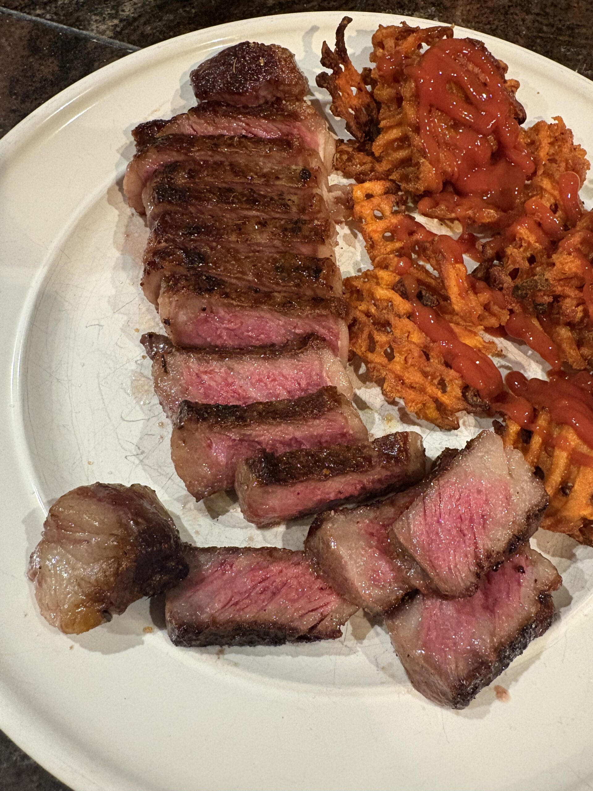That steak looks absolutely perfect, juicy, tender, and cooked just the right amount