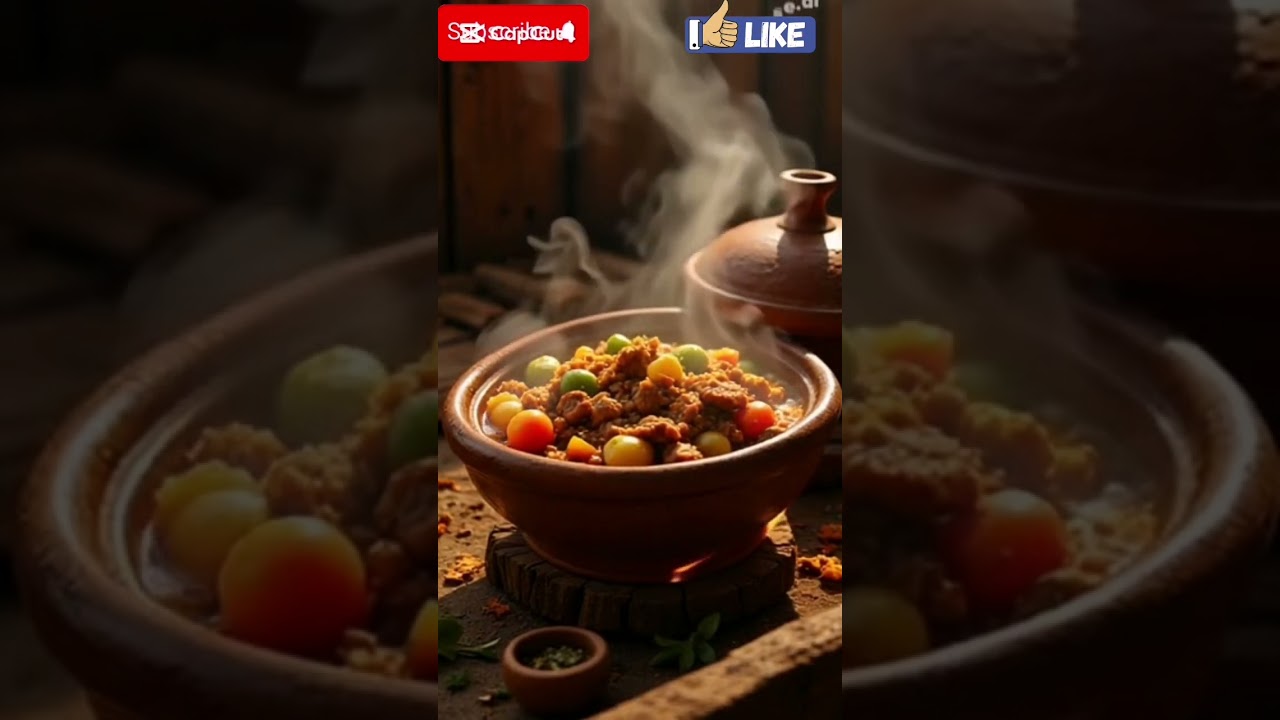 مشهد قصير للطاجين الأمازيغي المغربي، مطهو على نار هادئة برائحة التوابل الأصيلة، وخضار ملونة مع لحم طري يذوب في الفم. لقطة تختصر سحر المطبخ المغربي الأصيل