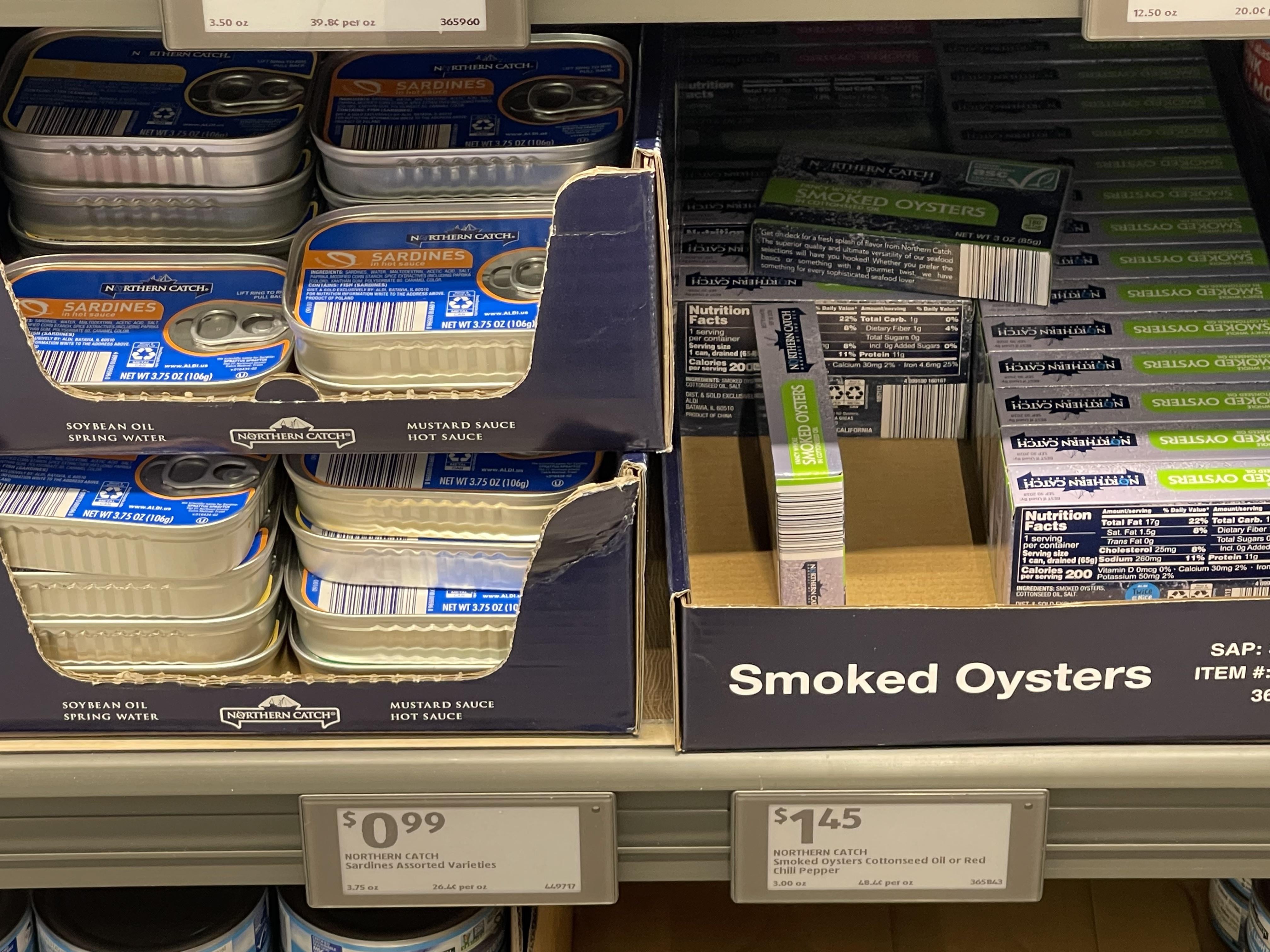 Aldi has the best prices by v_kiperman 9 Comments LionOfNaples 2 months ago The trade off being the quality of whatever they have in stock is inconsistent. Luciano1m 2 months ago Make sure it’s in olive oil or water and add your own olive oil. Sufficient-Bison 2 months ago Those are really nasty… Just spend 2$ more for KO or POLAR Ok-Food9531 2 months ago They never have those German herring tins around me, I want to try the pineapple curry one. 😤 monolithforge 2 months ago Are the smoked oysters from China? Swish887 2 months ago From China? Fuzzy_Welcome8348 2 months ago Best prices, not best quality unfortunately Firm_Chemist_2394 2 months ago The oysters are fine and truly a deal. The sardines are bad, not even worth that price. Zosima93 2 months ago I got excited about the sardines at that price point, but they were unfortunately pretty foul