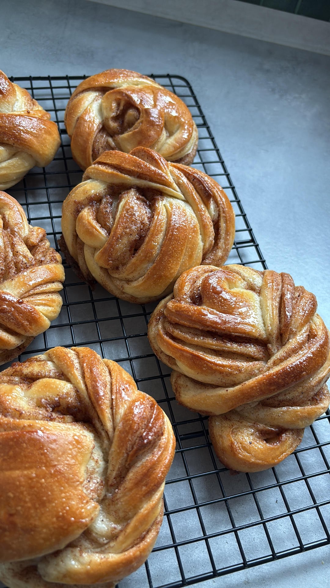 Knead until it passes the windowpane test. Bulk ferment for 2h and then cold proof overnight. Next day fill them with sugar, cinnamon and soft butter filling like cinnamon rolls shape them and proof for another 2-3 h before baking.