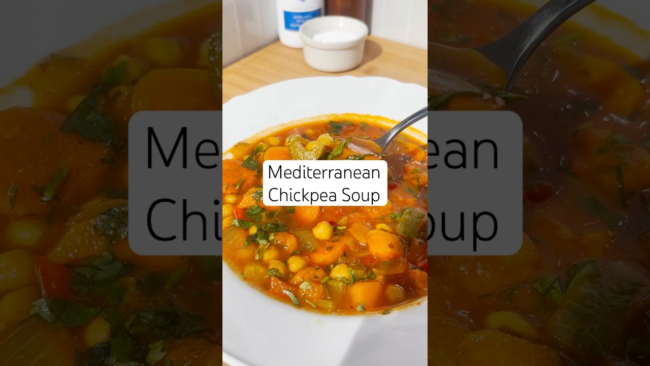 Chickpeas have been cultivated around the Mediterranean for about 9,000 years. That’s right. They are as ancient as the earliest civilizations of Mesopotamia and Egypt. But somehow, these good for you beans are still trendy. But that doesn’t surprise me because they’re loaded with plant-based protein, fiber, and a whole lot of goodness. Plus, they are absolutely tasty and carry flavor very well, as in this Mediterranean chickpea soup. So hearty and packed with flavor from lots of veggies, onions, garlic, a lot of fresh herbs, and some good spices with a little bit of lemon juice. You’ve created a big and bold Mediterranean meal, my