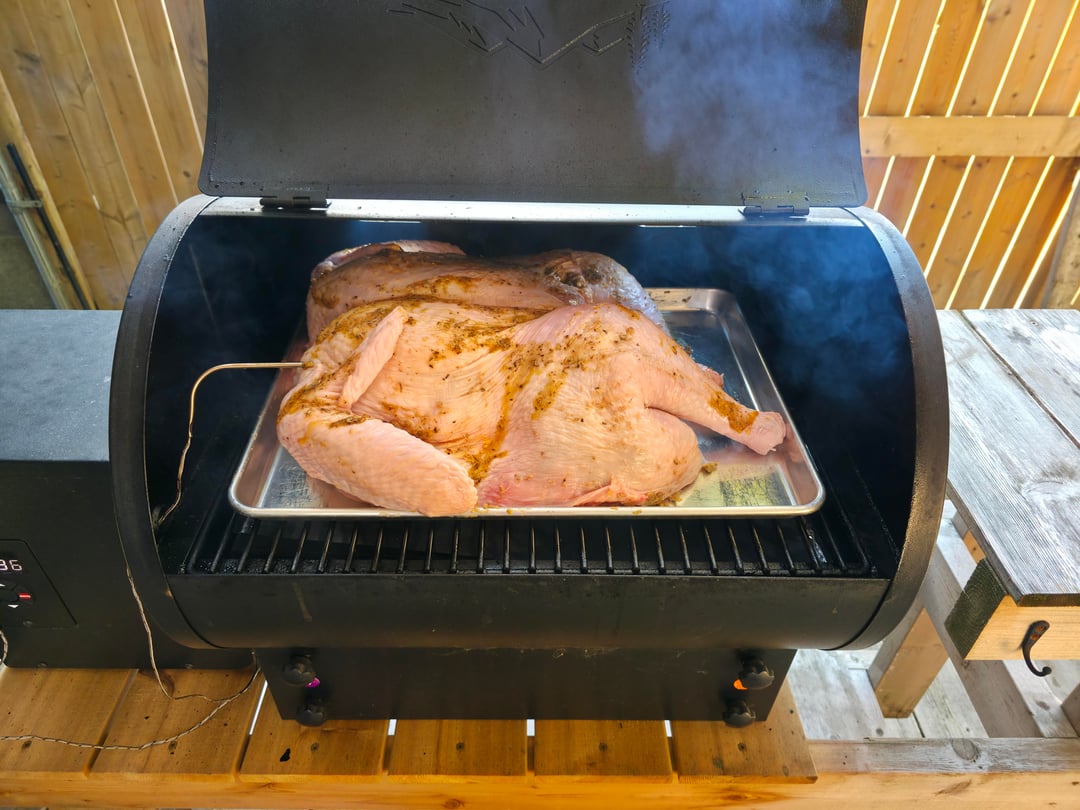 [Link to the rub I used](https://anaffairfromtheheart.com/smoked-turkey-recipe/), also I rotated the bird every hour to avoid hot spot issues, not sure if it helped but it didn’t seem to hurt and gave me regular reminders to check my hopper
