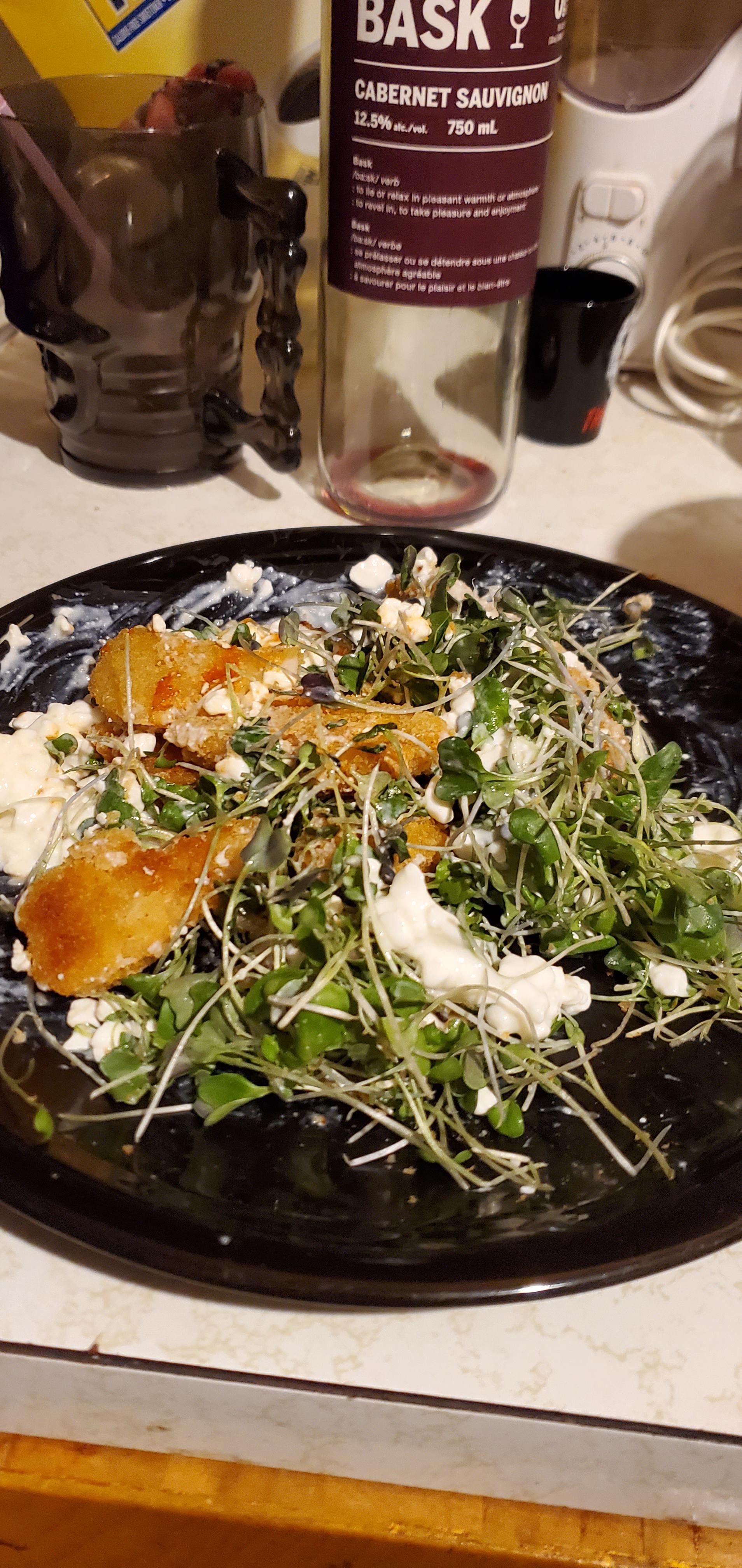 Found this whatever in my camera roll from last night. Name all ingredients in this fancy dish and I will give u a big thumbs up churrs 👍🍻 by hamburgery 4 Comments The00Taco 5 months ago Looks somewhat healthy at least? celeb0rn 5 months ago Water crest, goat cheese, and chicken nuggets? 31stmonkeyfinger 5 months ago Lawn clippings and some extra stuff. Crystal_Violet_0 5 months ago Feta, watercress, fish fingers.