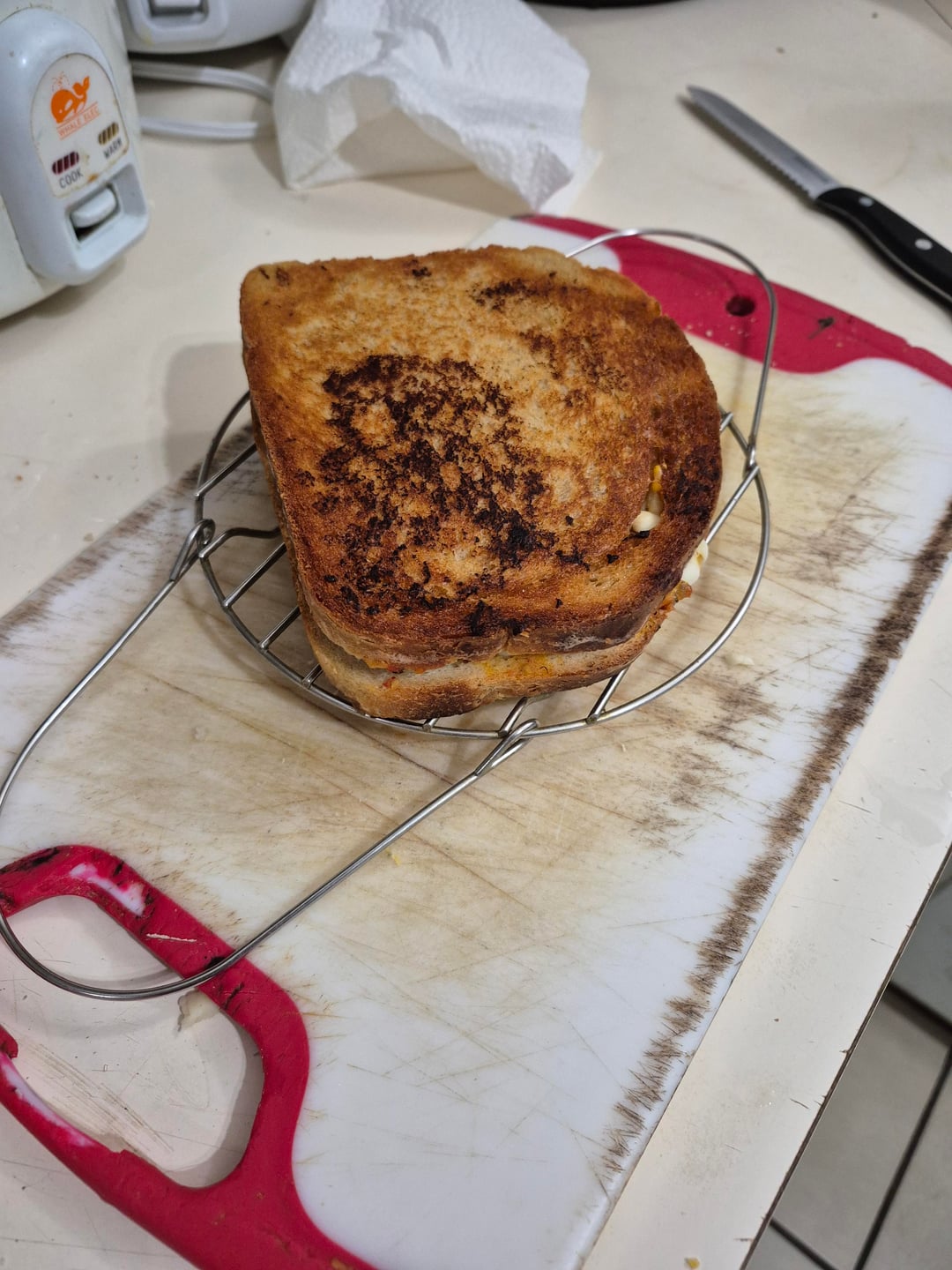 For those with an Instant Pot: you know those round wired stands you can put on the bottom of the Instant Pot to rest your meat on? Great to use to rest your grilled cheese on for a few minutes after you remove it from the pan. Keeps the bottom crisp instead of moist.