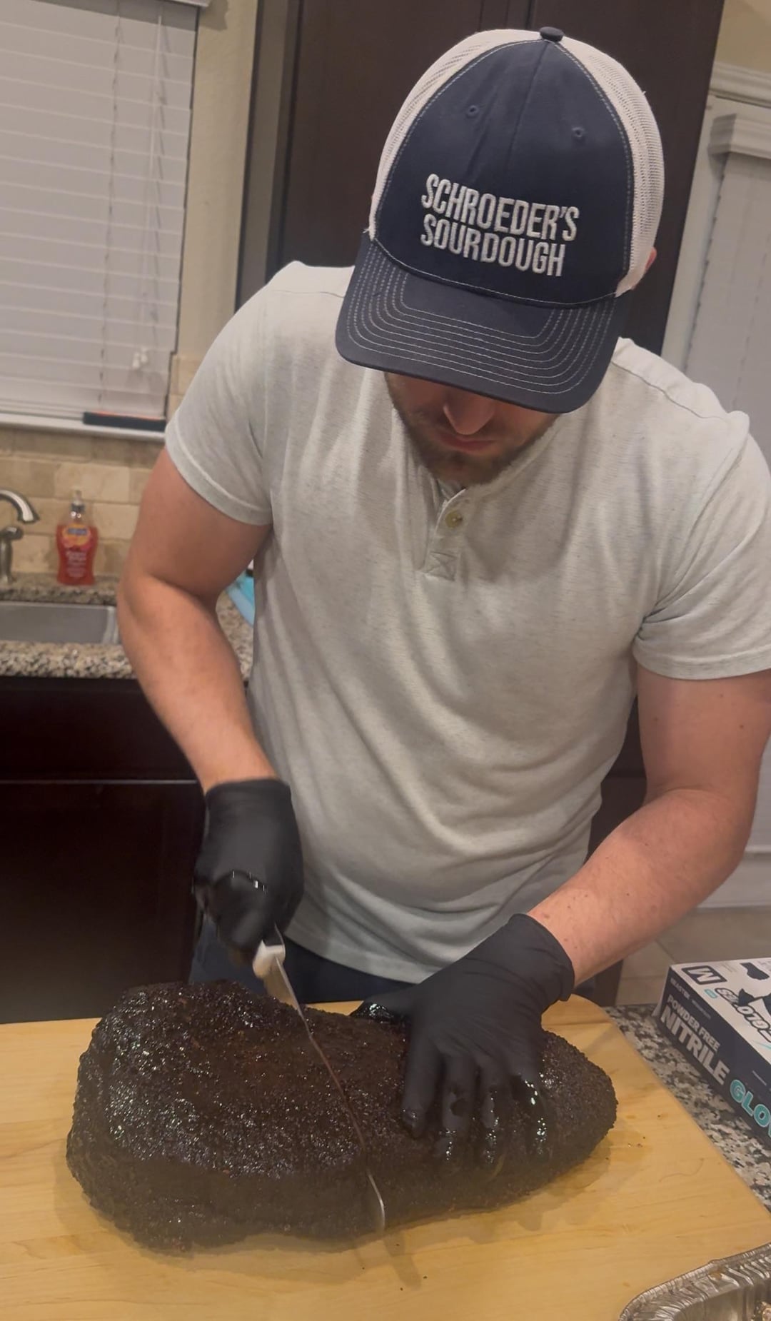 NoContract4730 3 weeks ago I thought your hat said Schrodingers sourdough. That would be an unreliable bakery. Brisket looks lovely.