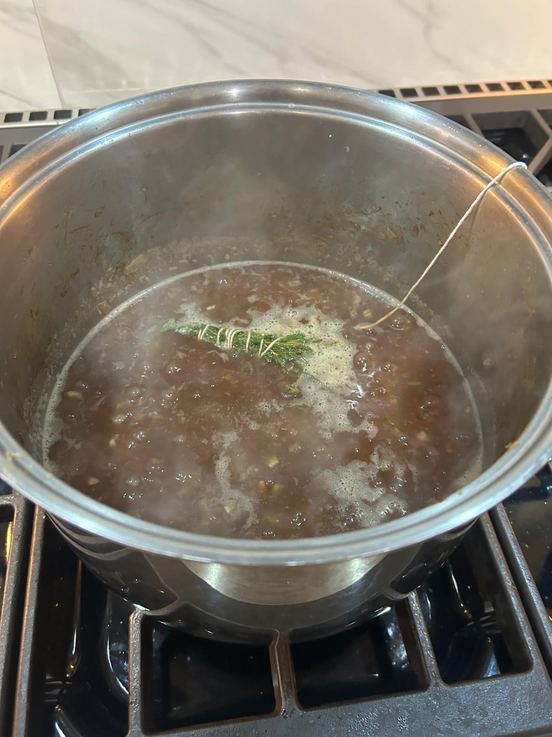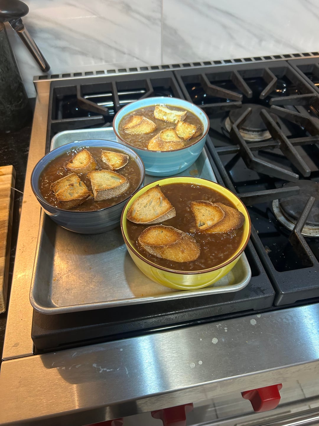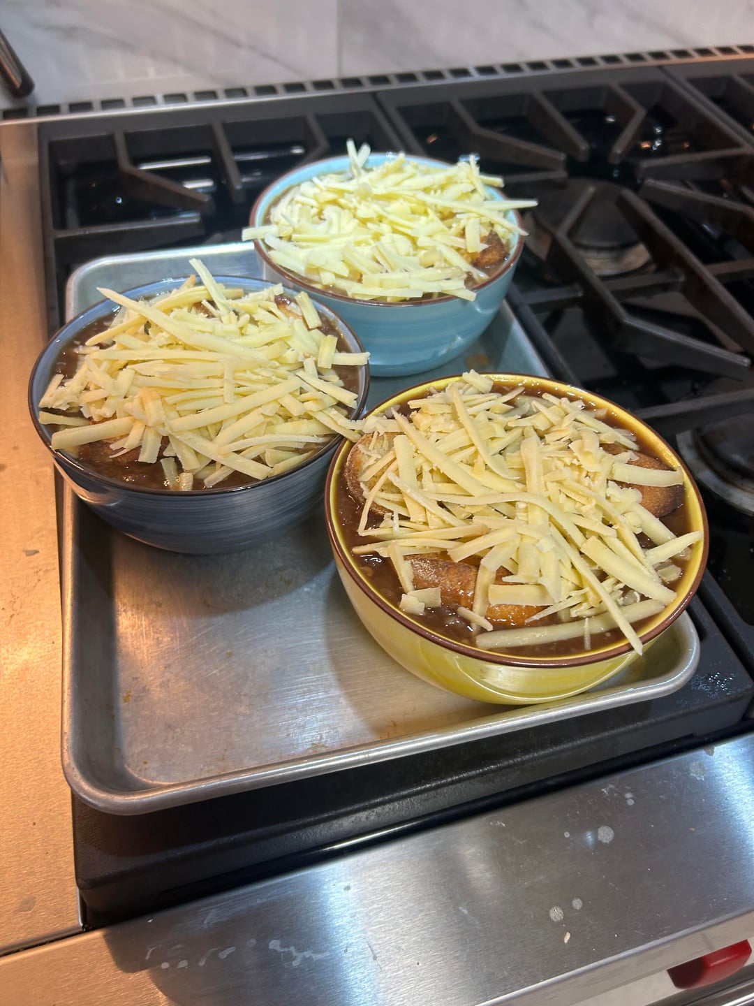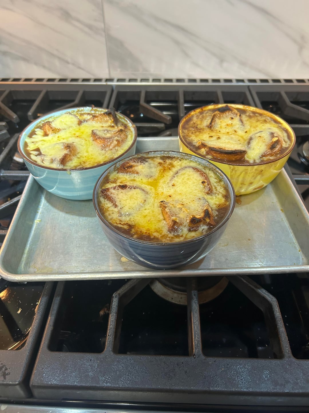 Loaded up French onion soup.