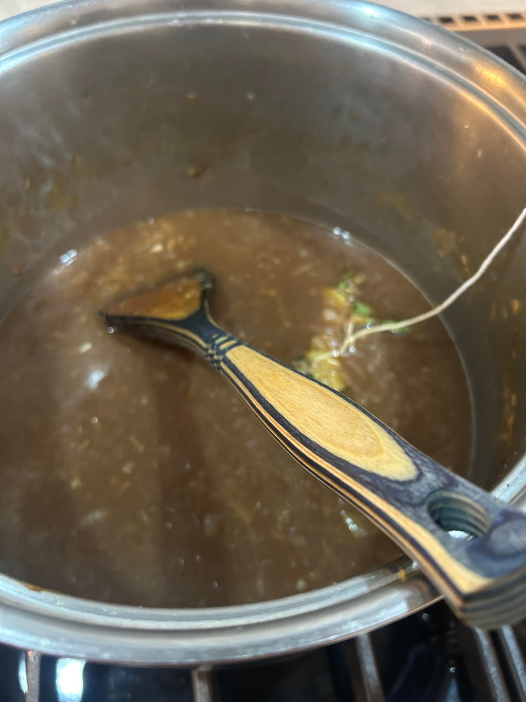 Where are you from? This reminds me of an “onion stew” my uncle used to make. He was a southwest Louisiana Cajun. He’d cook down a ton of onions, then make a roux from the cook down and then add water and the meat/veggie ingredients for a stew. It was not bad.