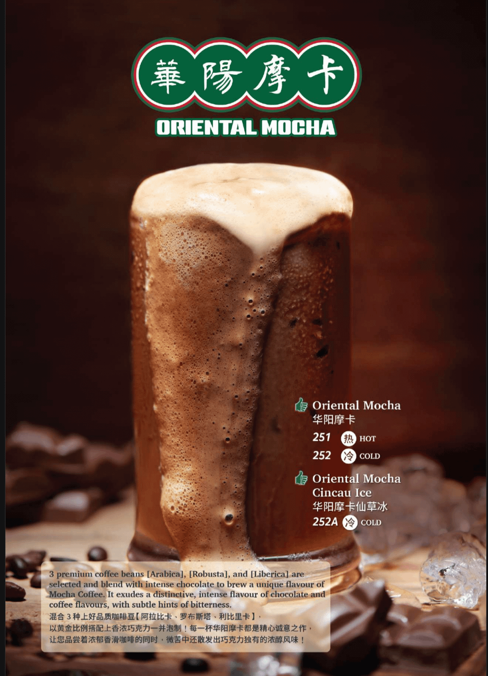 The overflowing mocha into a plate is how they serve this drink at a Malaysian restaurant called Oriental Kopi. Second pic is how it is shown on the menu. (First pic is taken from a website because my own pic wasn't good.) The mocha also got on the handle, making the mug sticky to hold so you default to using the straw provided. Food wasn't bad.