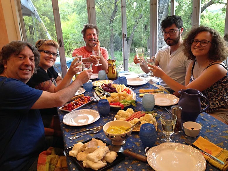 In a sunny, glass-enclosed kitchen, a pot of water bubbles away and the methodical clicking of a knife on wood welcomes students to class. Slowly they trickle in, and as each student crosses the threshold of this West Austin home, they find themselves transported to Provence. The boldly colored walls are filled with art, and sunshine carries the scents of Mediterranean herbs on its rays as they drift out of the kitchen. Eagerly, everyone gathers around a roughly hewn wooden table to begin their lesson.