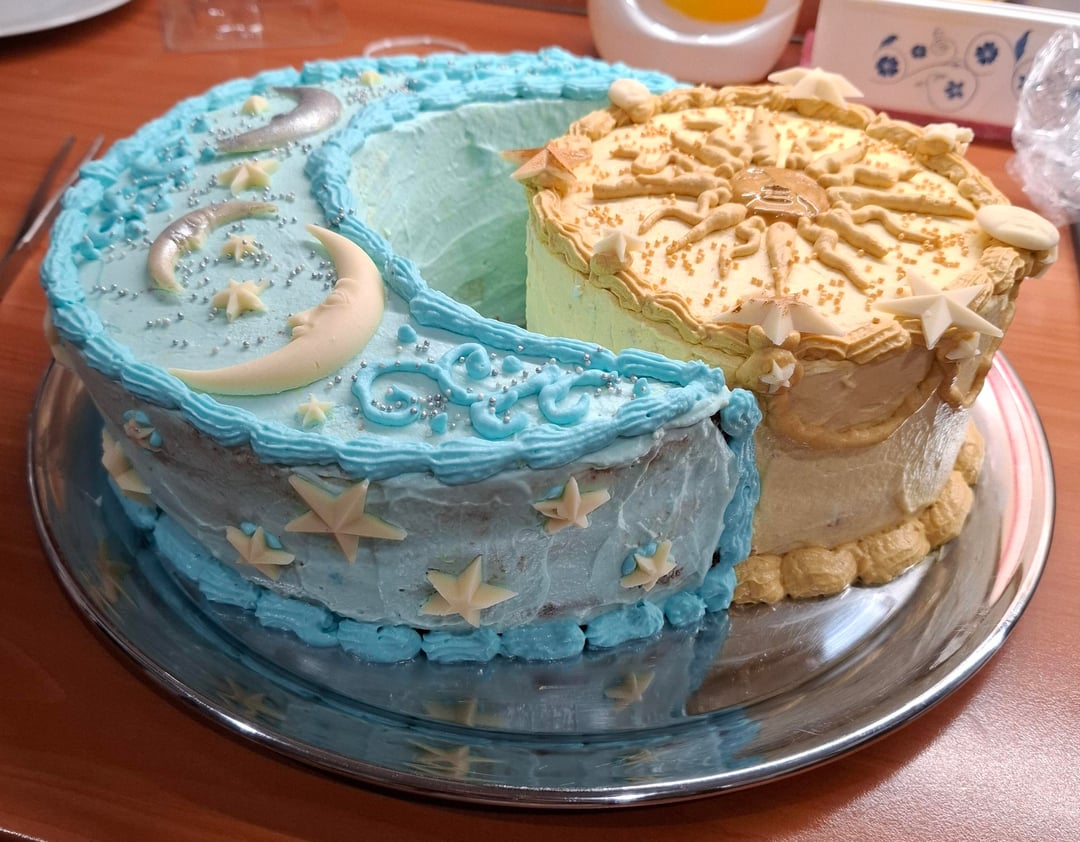 For a first time effort it looks fantastic! I love the design and the decorations! You are definitely going to be a master cake 🎂 maker in short time! 😻