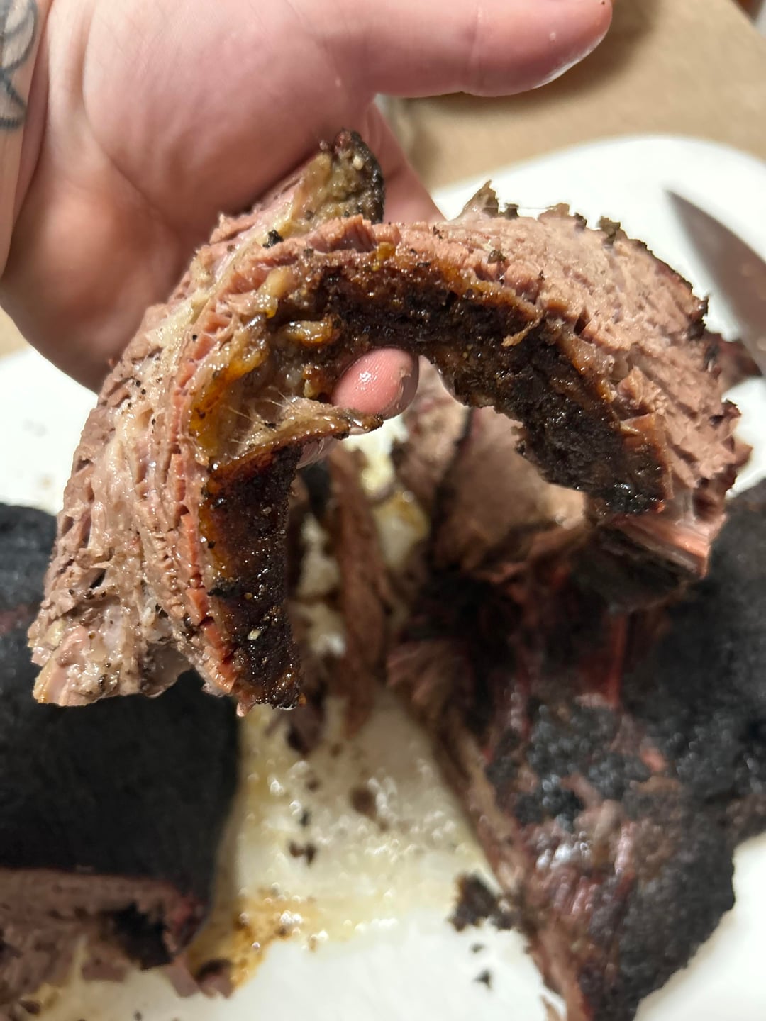 Ended up slicing it open this morning, completely destroyed the flat, it’s hard and dry, I guess I’ll throw it in the crock pot with some beef broth sometime this week, but the point was great, it smells and tastes awesome, ended up shredding it, going to make sandwiches, omelettes, tacos, and anything else I can think of, but I need suggestions on what to do with the flat