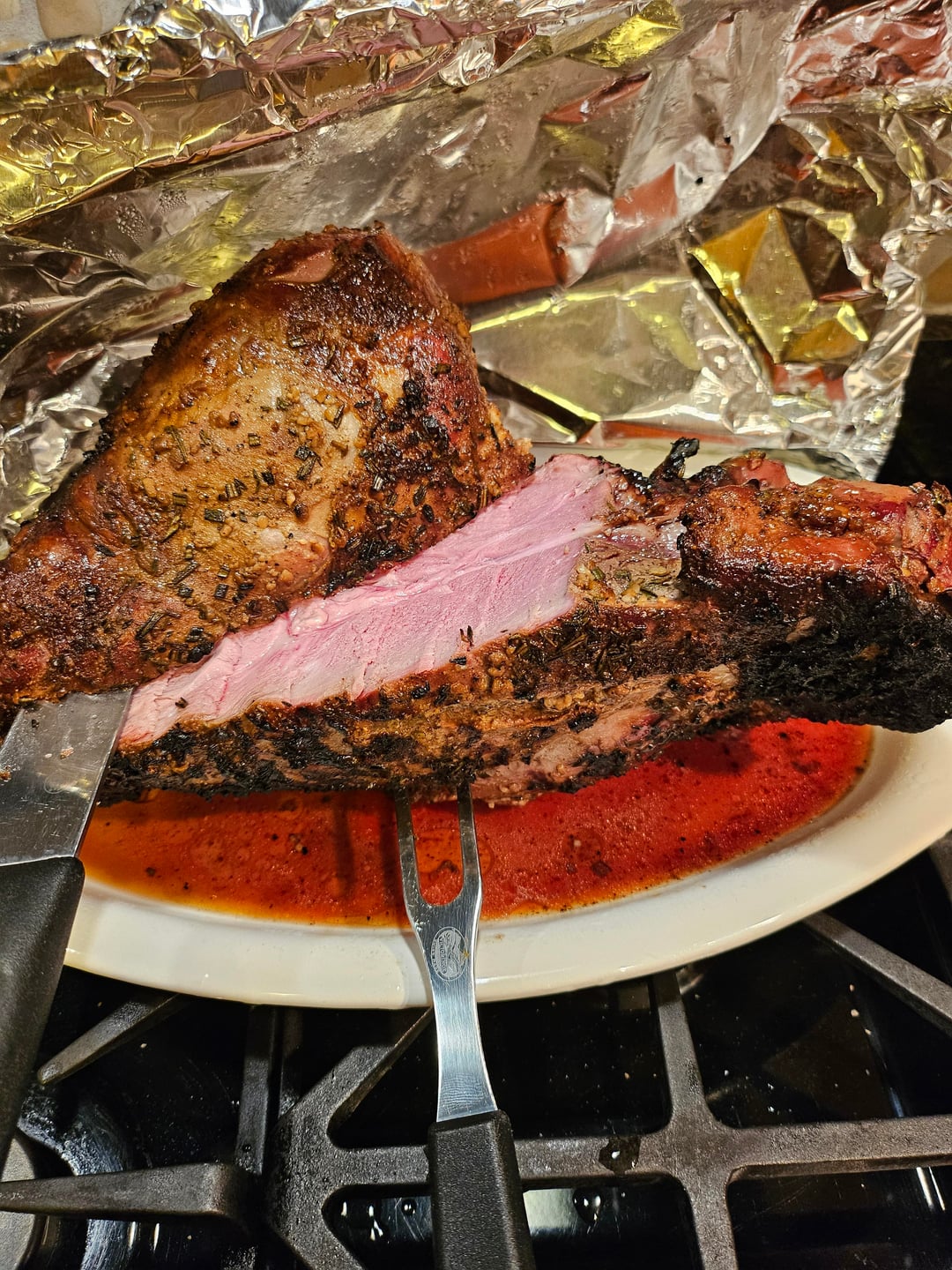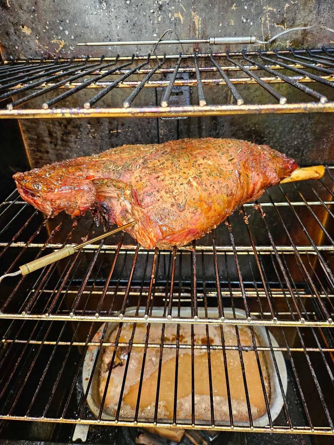I let it rest until I prepared the rest of dinner (roasted baby gold potatoes, asparagus and a mushroom gravy) and I was a little concerned about the amount of juice it released while resting, but no need to worry. It was flavorful, tender, juicy and delicious! It's my first smoked lamb leg and it's the best lamb I've ever eaten!