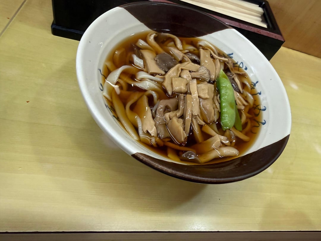 A Nagoya classic and a favorite for those heading from west-of-Kansai transferring to a Kodama for “local” service (I know, a local train running at 175+ mph sounds ridiculous), Kishimen is a variation on Udon in that the noodles are chewy and wavy instead of the usual thin-square cut of Sanuki style, served on a sweet-ish dashi broth. The two bowls here are Squid Tempura and autumn mushroom kishimen. The place is a Tachigui 立ち喰い or standing restaurant where you order using the vending ticketing machine outside then gesture to the restaurant worker how many are in your party – when a spot opens up you are waved in, you give the worker the ticket, and you were served within a minute or so. There are 2 of these on the Up (Tokyo-bound) platform, one in front near Car 14 and one at the back towards Car 4. I think the Down (Hakata-bound) platform also has similar arrangement. For some reason the booth on car 4 is significantly busier than the one on 14.