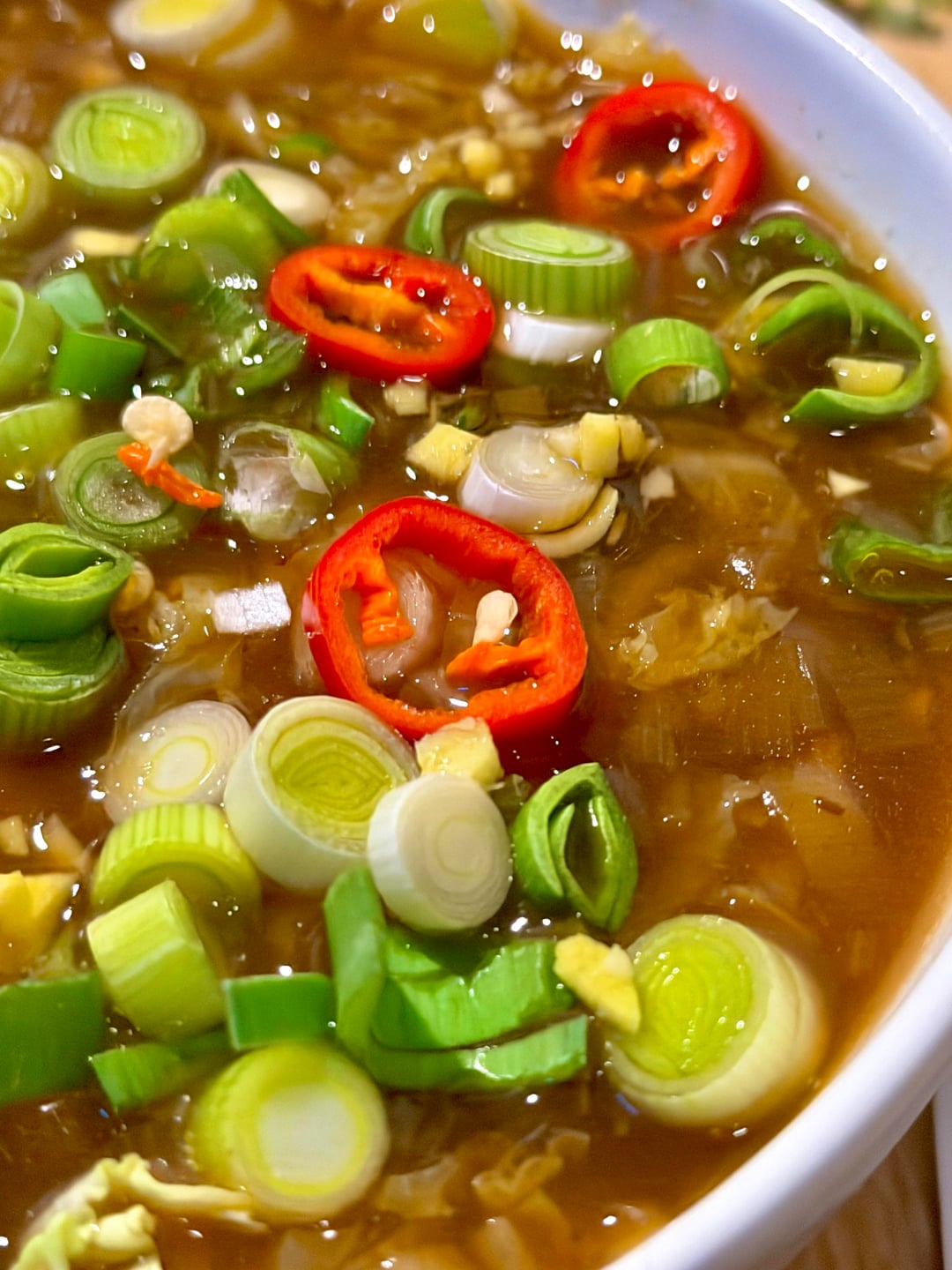I love making loaded hot and sour soup with stuff I’ve got in the fridge. One thing that *really* makes a difference is white pepper.