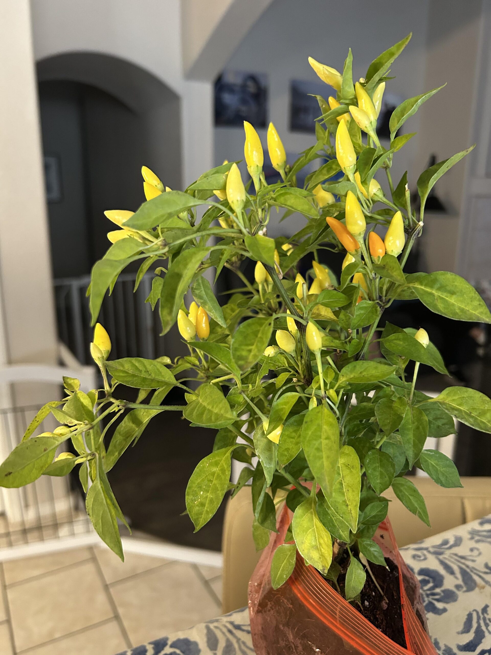 My friend gave these to me… tried google image searching, and it kinda looks like a lot of things… possibly Tabasco or lemon drops?by GrayStag90 3 Comments therealhughjaynis 3 weeks ago Tabasco peppers? goosey814 3 weeks ago Thai pepper Ok_Cookie6726 3 weeks ago Tabasco peppers! Each plant makes so freaking many lol