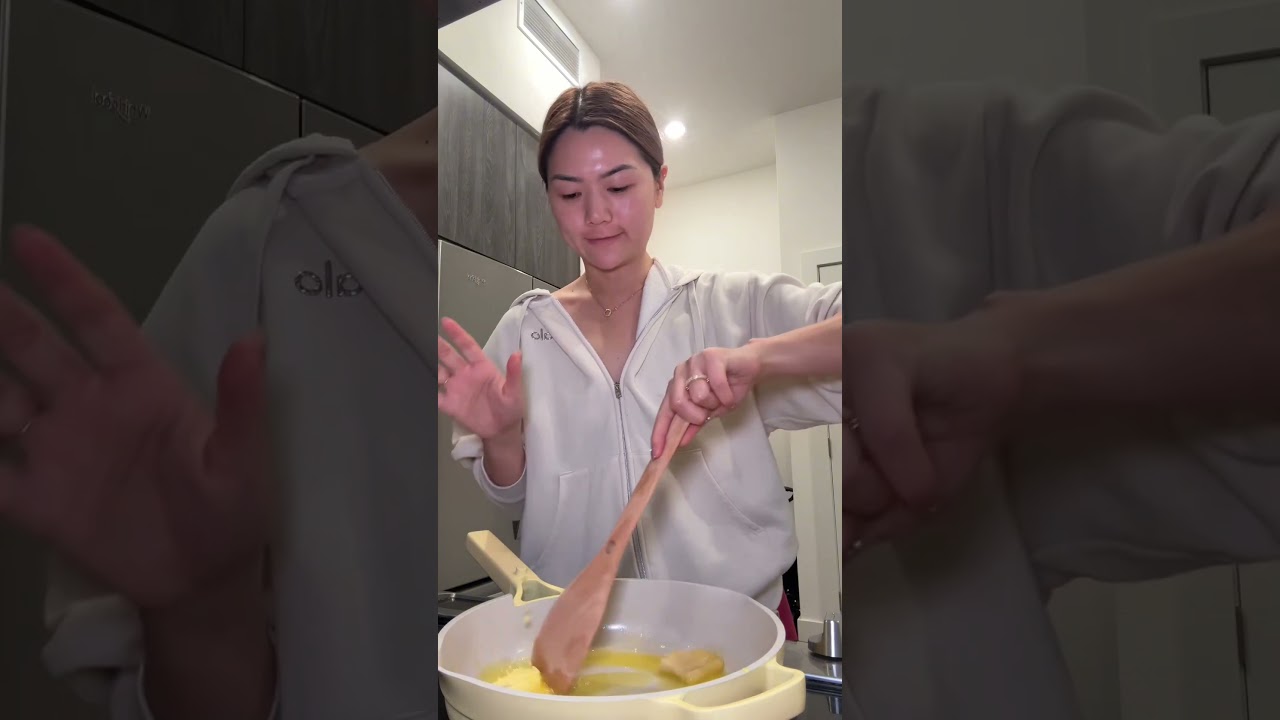 If there’s one dish that I can make right every single time, it’s clam linguini. And I know a lot of you think that I cannot cook for myself, but I can. Put the shallots to the side. Now we have the parsley. This is a lot of parsley. You could probably use like half of this. We’re going to cook up the noodles. We’re using Linguini noodles. This is a new brand that I’m trying out. It’s gluten-free, so I actually don’t know how this is going to turn out or taste, but we’ll try it. Throwing in the whole bag. I’m going to lower the heat down to medium. Make sure the noodles are fully submerged. Gently stir this and then I’ll put the cap on like halfway. Now it’s time to cook the clams. I’m using my brand new Our Place butter pan. Olive oil. Half a stick of butter. Three cubes of garlic. I want the garlic to be infused with the butter. Be fiance is helping me cuz this pan is really heavy. Now we’re adding the shallots. This is when you know the clams are ready to go in. Add a little bit of white wine. This is salon blanc. I am not a wine expert and literally your cheapest white wine will do. And then you want to add your parsley. And because I like a lot of lemon, I’m going to probably use squeeze two lemons in here. So everything is submerged into the sauce. Add the cover on top. Let the clam steam for like 10 minutes. Oo. When they’ve all opened up like this, that’s when you know it’s ready to add the noodles. Add a little bit of oyster sauce. Ah. Adding in the linguini noodles. Okay, the pasta is done. Let’s try a little clam.