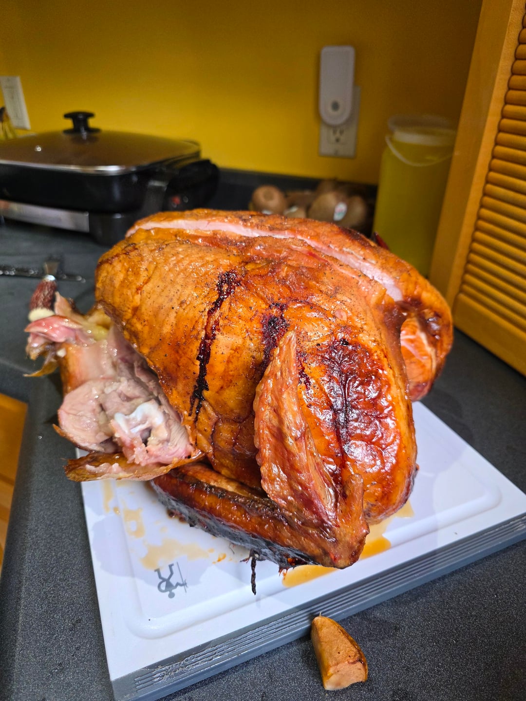 The juiciest turkey I've ever had. Not sure I can go back to oven turkey 😄.
