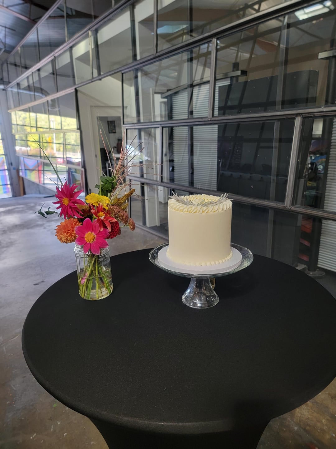 My coworker got married yesterday and asked me to make a small cake to be cut by the couple (they served sheet cakes to the guests.) They wanted it very simple so I tried my hardest to keep it minimalistic.