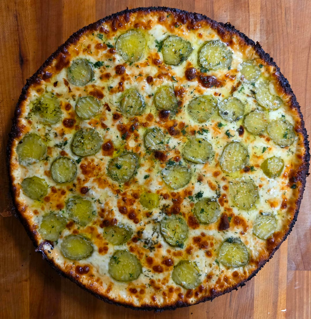 I love pickle pizza, one restaurant by me had a Spicy Pickle Pizza, it was a garlic olive oil base, large crinkle cut pickles, and fresh jalapeños. It is my favorite.