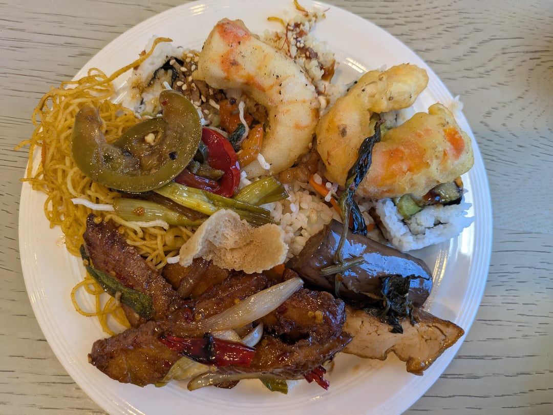 Veggie Eat is a fully vegan restaurant with a lunch buffet! It was so good. There was sushi, Mongolian chicken, salt and pepper shrimp and more available on the buffet. We also ordered the crab filled jalapeno poppers. by Skate_vvitch 1 Comment Coconut-Lemon_Pie 2 days ago That looks amazing!