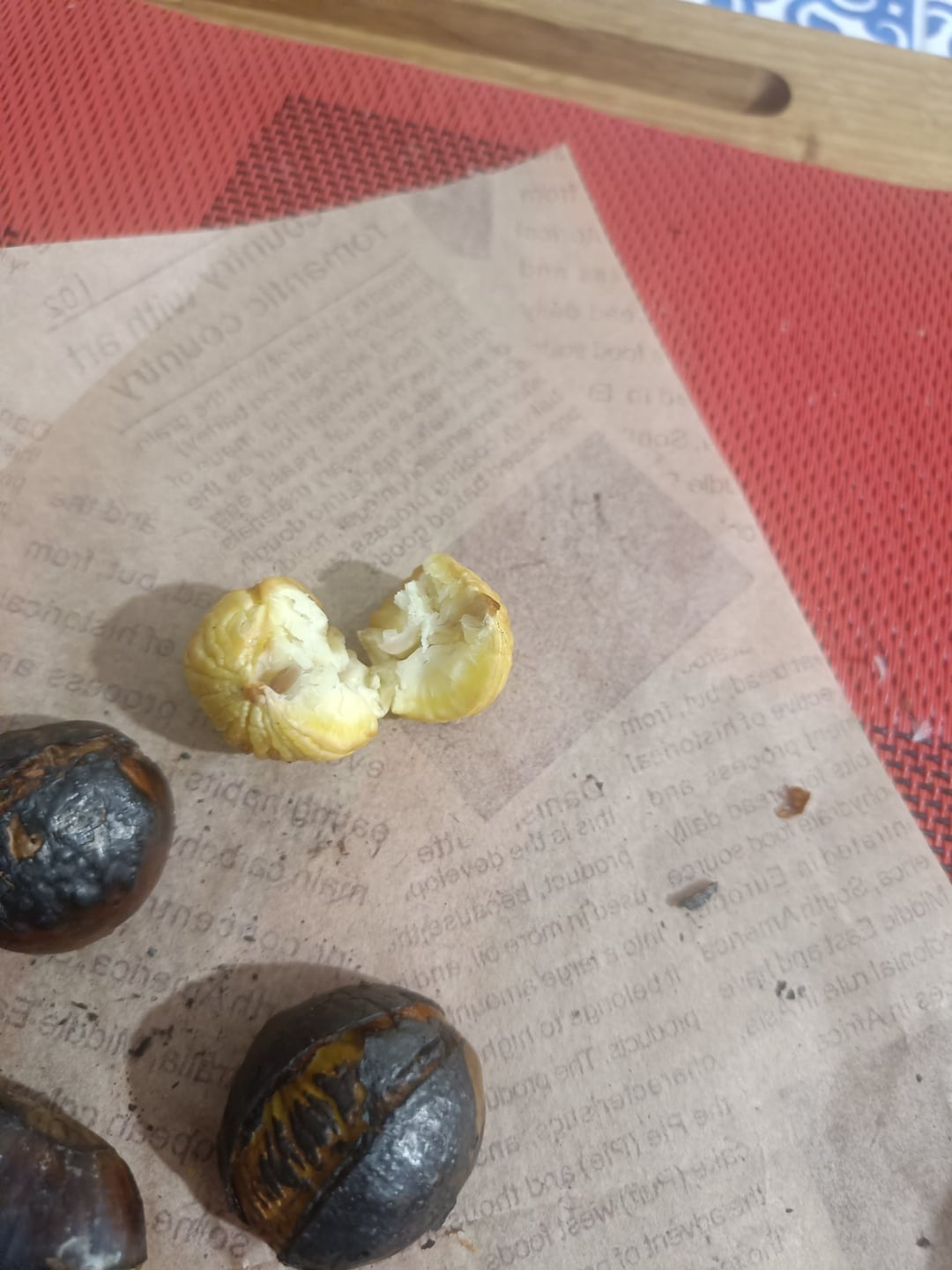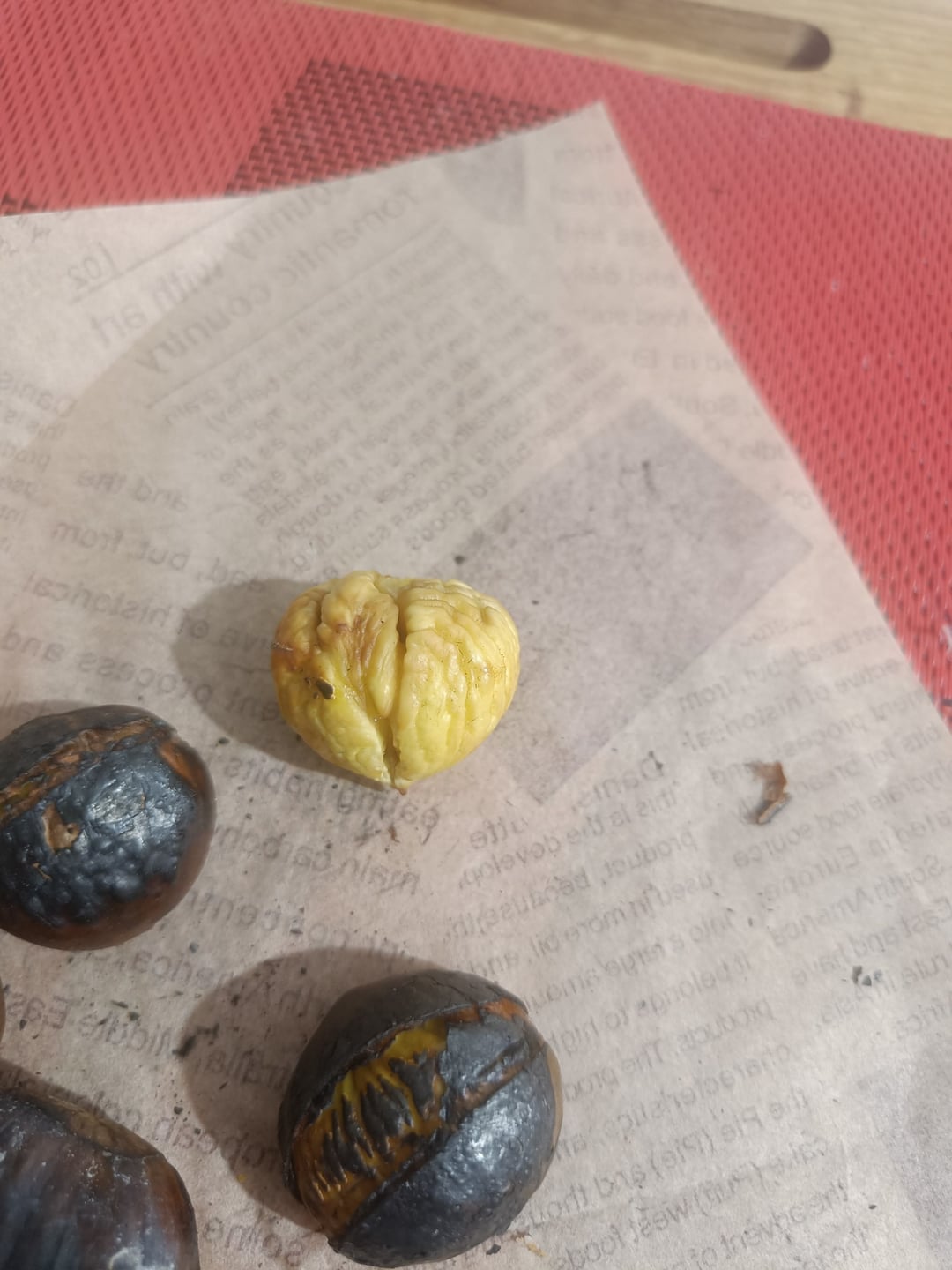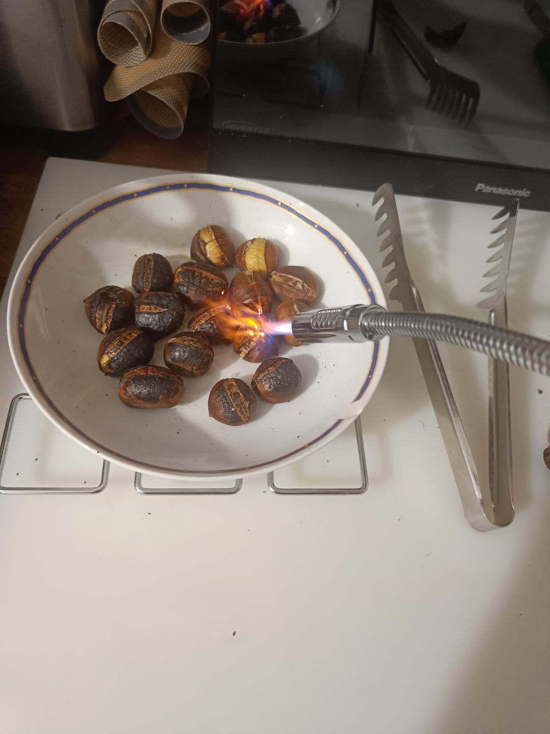 Since I didn't have gas, I couldn't use the special pan for caldarroste, so I thought of an alternative: Cooking with coarse salt (which, from what I know, is a very valid traditional technique and has proven to work very well) plus a little color and aroma with a kitchen blowtorch.