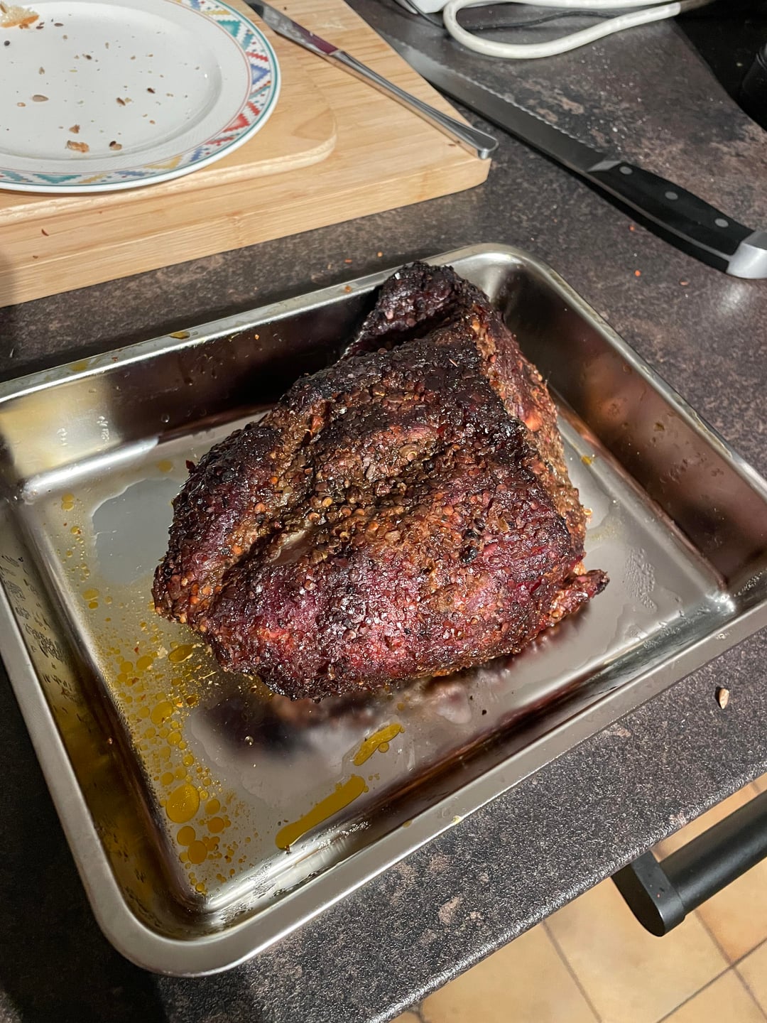That said, the temperatures can shift at various points on a long cook for various reasons. The wind can pick up and blow on your vents a little. Various “heat sink” items like the deflector, drip pan, and the meat itself come up to temperature. The fire itself may just burn a little differently, since we’re using charcoal and not a regulated heat source like a heating element or a propane tank.