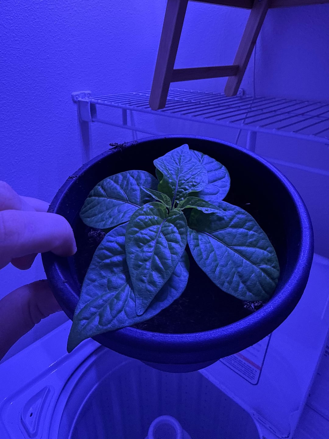 Growing reapers from seeds. Pics from newest to oldest. I’ve got them indoors with a grow light for 18 hours a day. There’s an aphid problem on a couple of them so I’m gonna use some DM earth and put a perlite/sand mix as a soil topper. Might use neem oil.