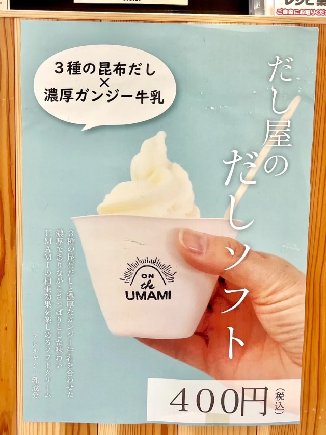 But all those thoughts were suddenly overpowered when Udonko saw the shop’s poster for Dashi Soft Serve Ice Cream (だしソフト).