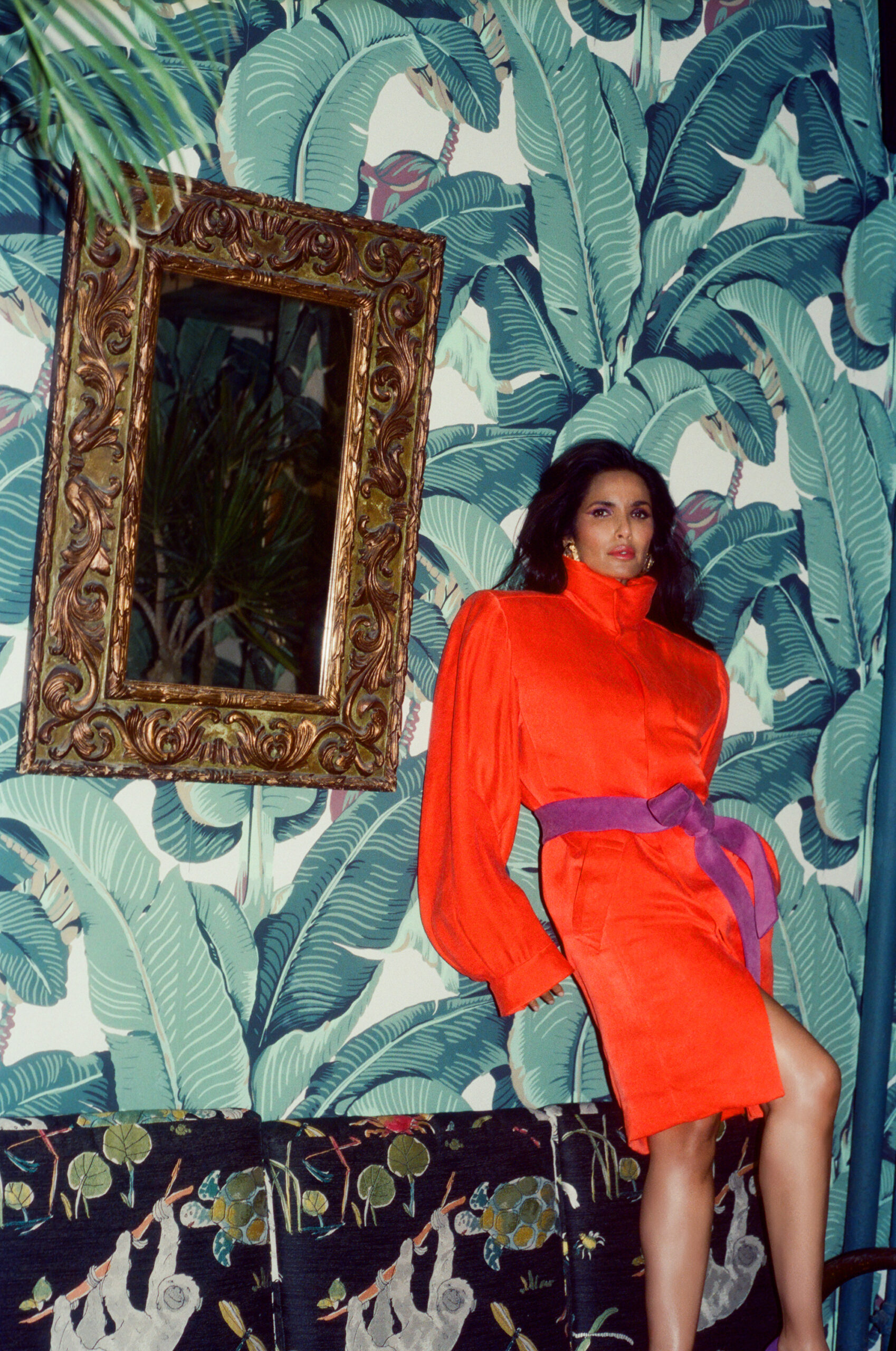 Padma Lakshmi is pure aura. You can feel it from across the room. It radiates through you TV set, oozes from her TikToks, and pulses through her book. In person, it’s as bright as the sun. On a Friday afternoon, still glammed up from her photo shoot, we sat down and drank champagne in Indochine, one of her favorite restaurants in the city she’s called home for most of her life. We ate baby back ribs and spring rolls with our hands. We talked about the future–her latest cookbook, Padma’s All American, and the next chapter in her television career, America’s Culinary Cup. We talked about the past, we talked hot dogs, we talked shit. No French food, no rare steaks. She is booked, busy, and thriving. She likes her food hot. No sharing. She’s a boss, and she eats in bed–only Italian linens, no crumbs, no stains. She knows exactly who she is.