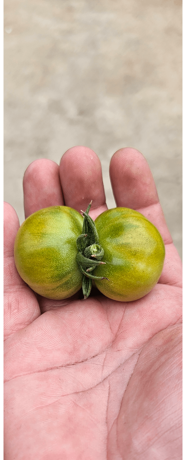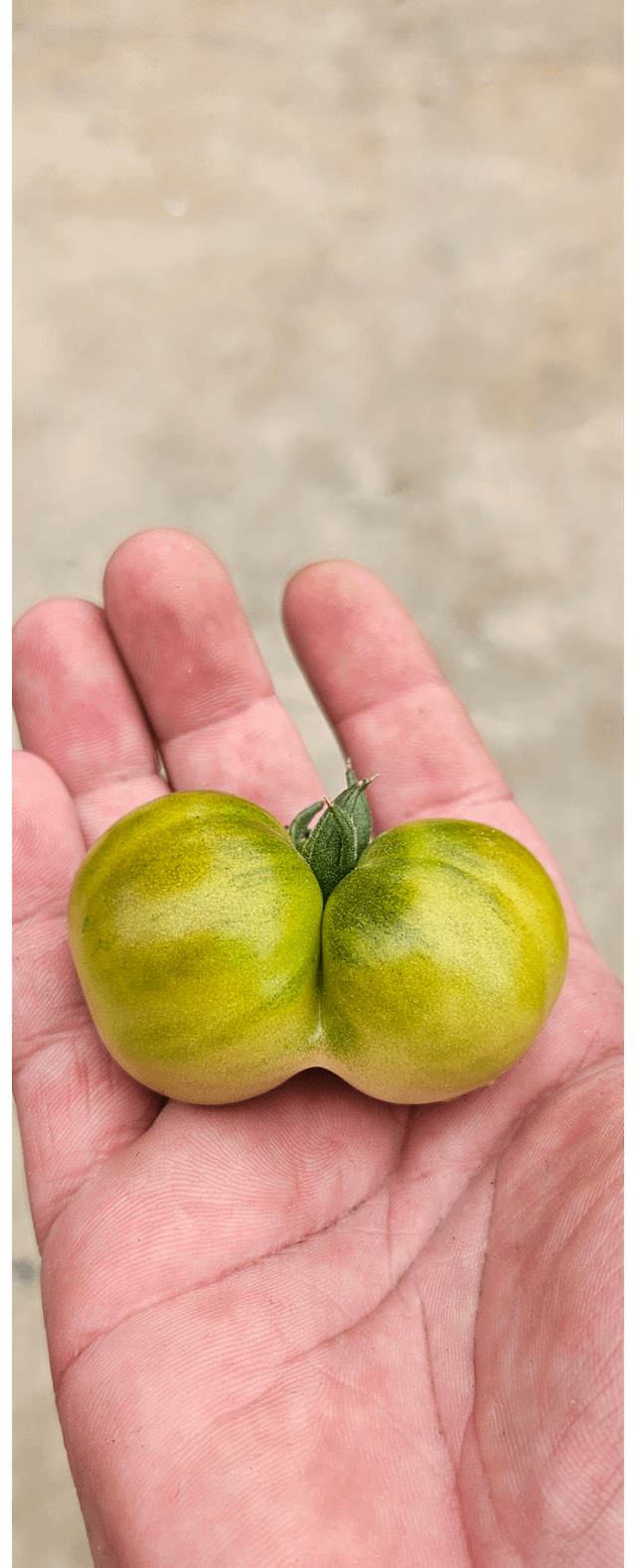 You likely had a fasciated flower (megabloom) that caused kind of like conjoined twins of the tomato world. That happens pretty regularly with homegrown tomatoes, especially heirloom varieties. I have one now (Lillian’s Yellow Heirloom) that is like half a tomato that’s very long and it looks more like a yellow pepper. One of the fun things about growing your own veggies is, you never know what you’ll get!