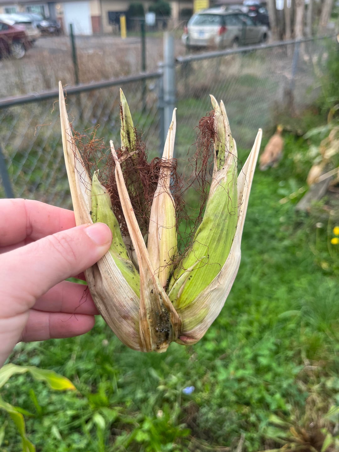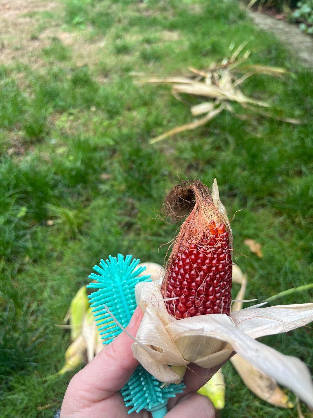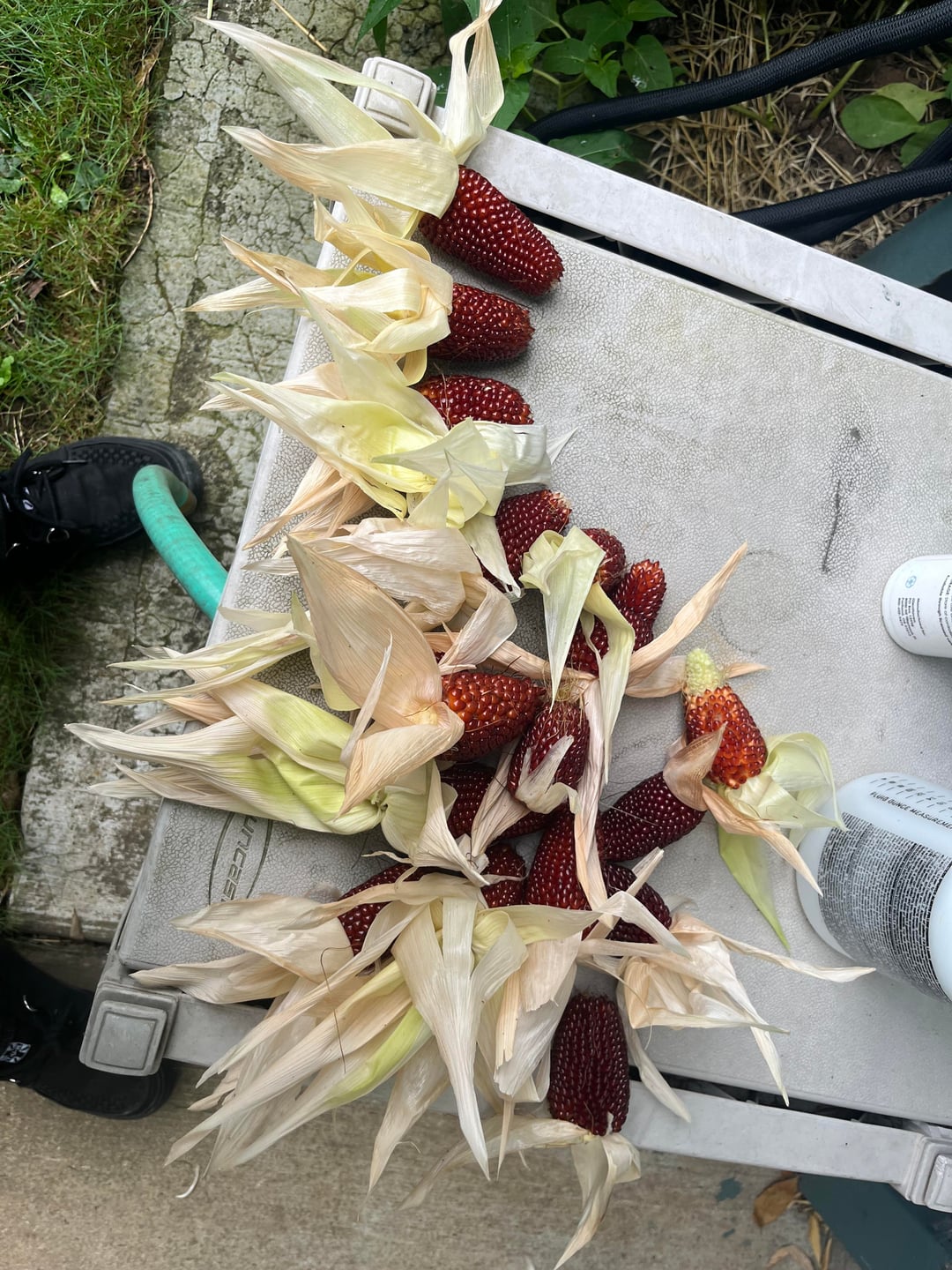 But this strawberry popcorn did alright! I think this is from something like 15 plants. I only had space to do 3 rows. Most of the main cobs had smaller less developed cobs growing from the same spot (last couple photos), which was surprising to me. I’m still not sure I’ll grow it again but I’m slightly reconsidering my vow to never grow corn ever again in my current garden!
