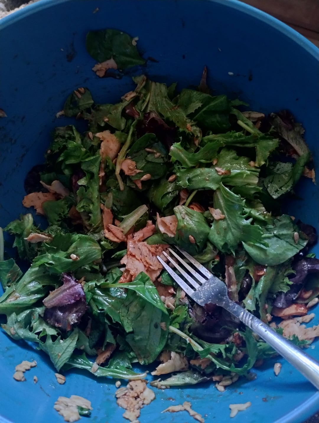 The Japanese BBQ sauce was a little salty with the salted sunflower seeds but I drank an extra 2 glasses of water. I'm now almost uncomfortably full and it was only 300 calories!