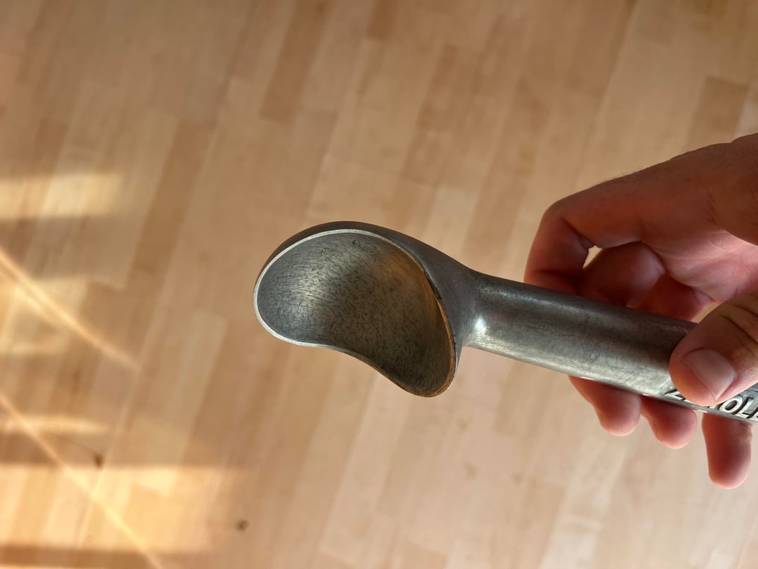 Yeah it looks like someone ran it through the dishwasher. I don’t think it’s safe to use after that’s happened (if you check some posts here, people have had some gray residue come off onto their ice cream when scooped).