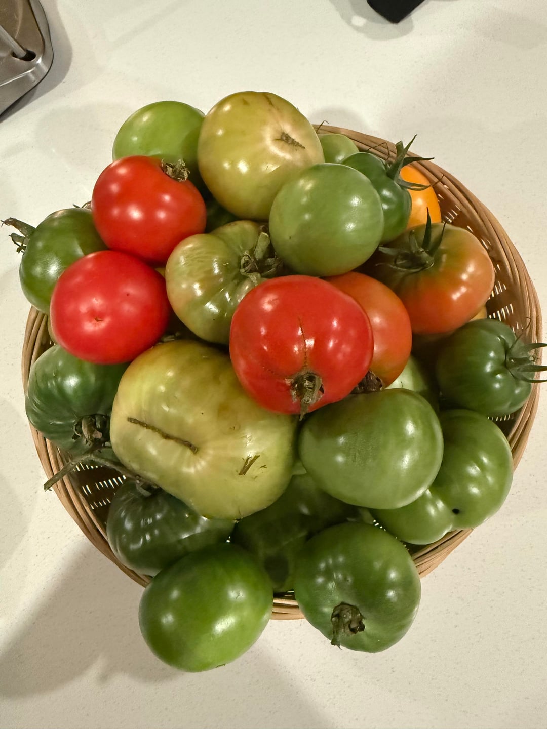 Summer has ended – I am sad but I harvested almost 30lbs of tomatoes amongst other veggies .by Crafty_School6650 2 Comments jnuggz 1 day ago Yuumm! My mom just gave me some bittermelon HighColdDesert 1 day ago Bitter gourd, yay! What climate are you in?