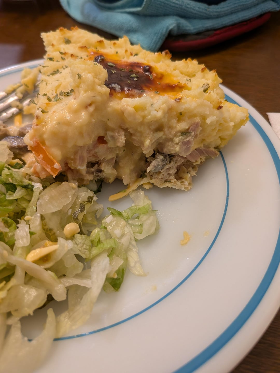 Thanks for the report! The original post peeked my interest and I enjoy both tuna melts and shepard’s pie… I’d probably do the same upgrades too. Side note: the inner leaves of celery are a good sub for fresh parsley.