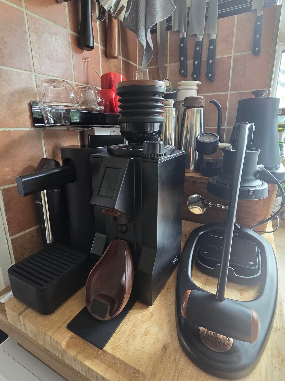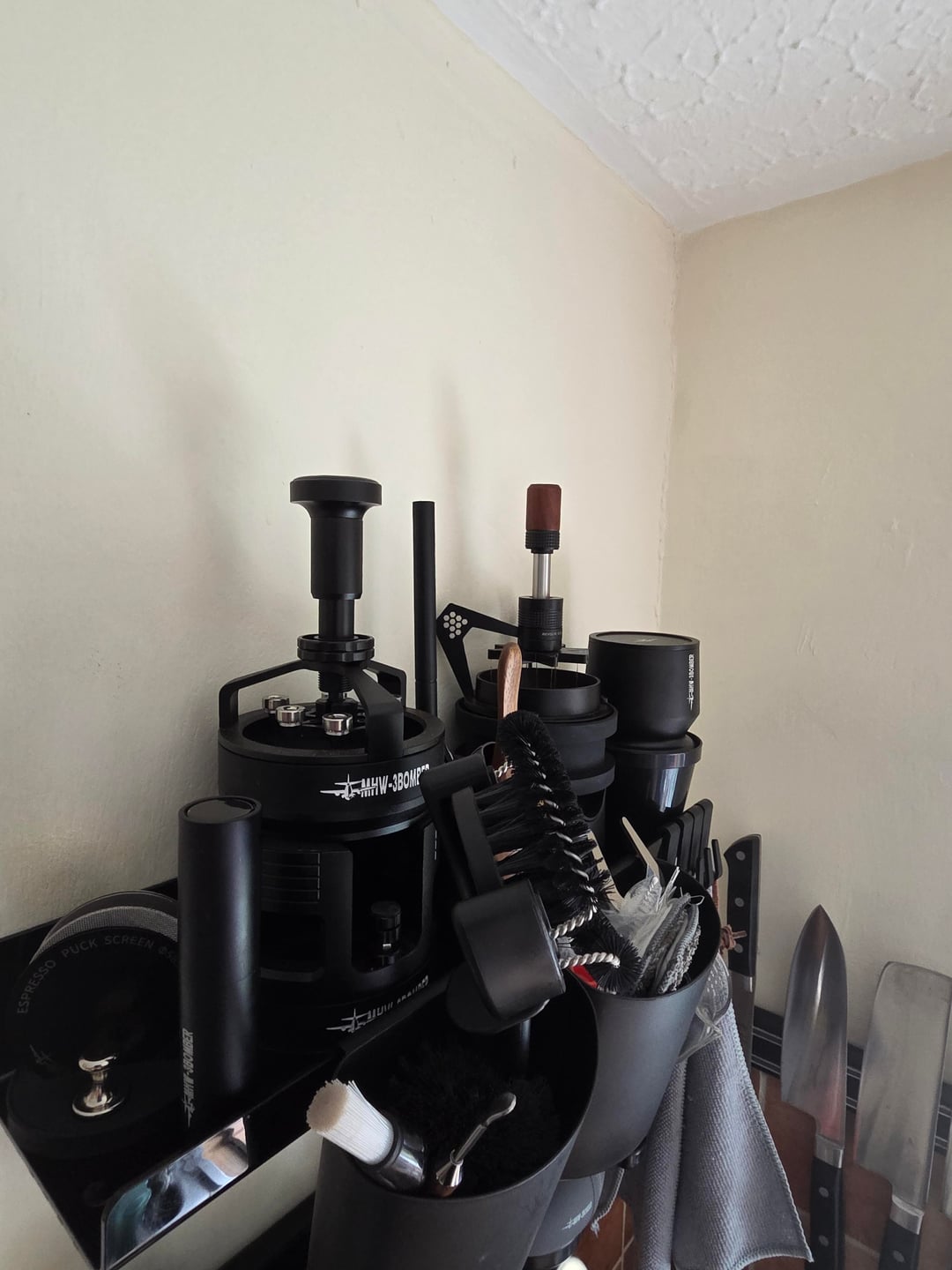 I have relegated as much gear as possible to storage, but pictured is stuff I use at least once/twice in a week, large amounts of it daily, if anyone has any ideas I've missed (wall mount the grinder, buy a TARDIS..?) or has faced a similar dilemma, please comment!