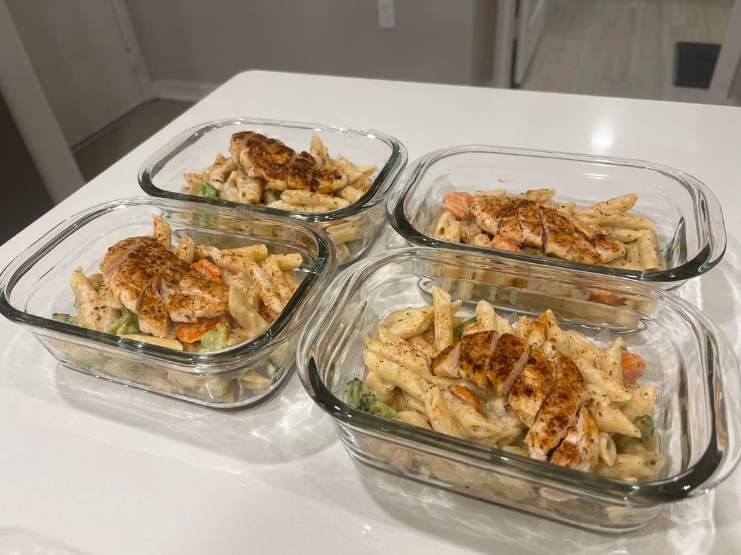 I started my boiling my salted water for the noodles. Boiled those for 12 mins (follow box instructions). Trimmed & patted dry my tenderloins + seasoned with seasonings listed above. I heated olive oil in a pan over medium high heat and cooked my chicken in the pan until 165°f internal temp. Removed the chicken to rest, then added the bag of frozen veggies to the same pan. I let these cook for a few minutes, then added my noodles and alfredo to that same pan and seasoned with more garlic powder & Cajun seasonings. I then sliced up some of the chicken and mixed it in, and used the other tenderloins to slice for on top for aesthetics haha. Enjoy!