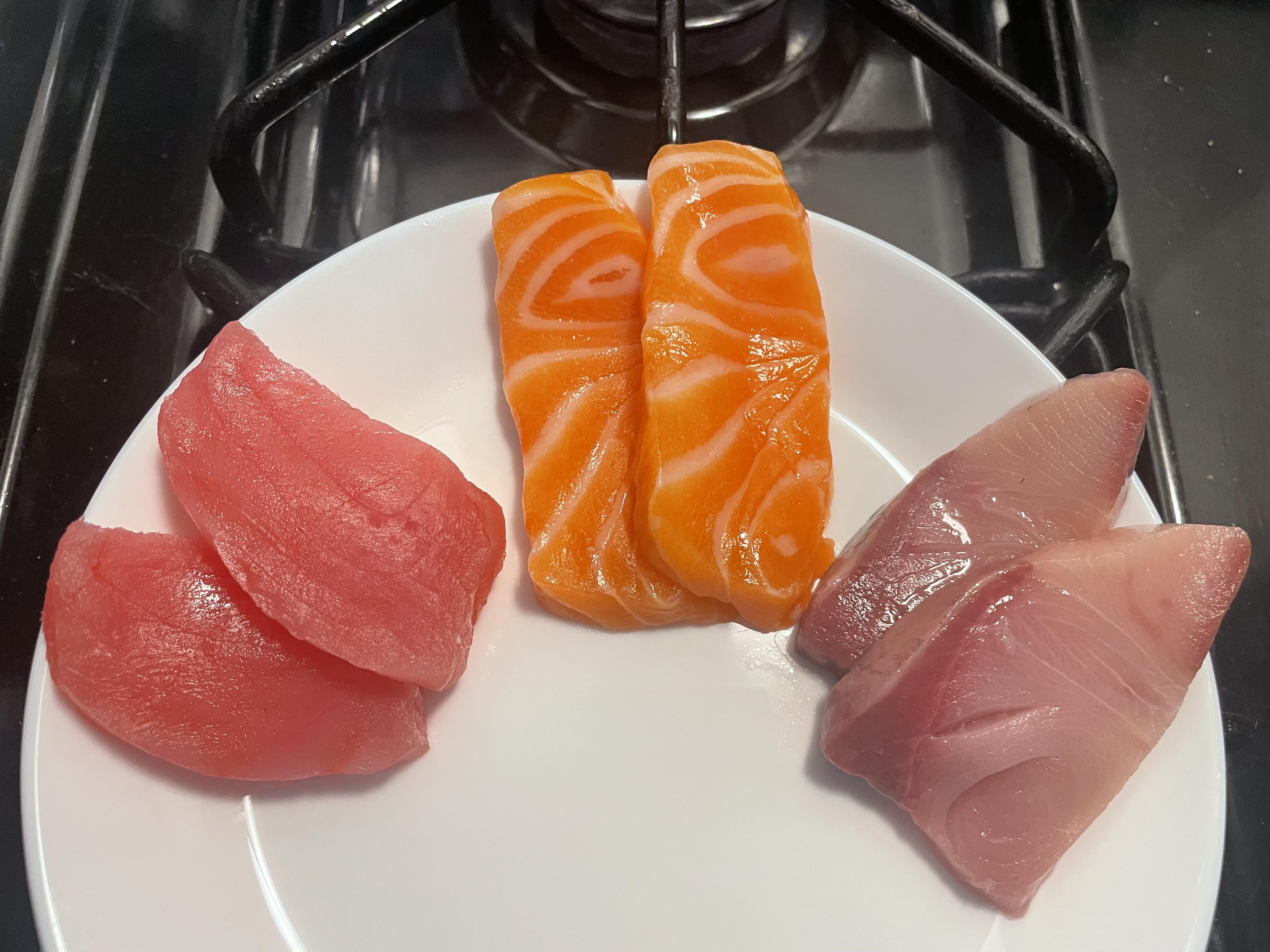 I’ve just barely dipped my toes in the sushi world so give me some grace, haha. I got some admittedly pretty cheap sashimi—chef’s choice—and mainly wondering what the one on the far right is. 90% sure the one on the far left is tuna also, and of course the salmon is pretty obvious.