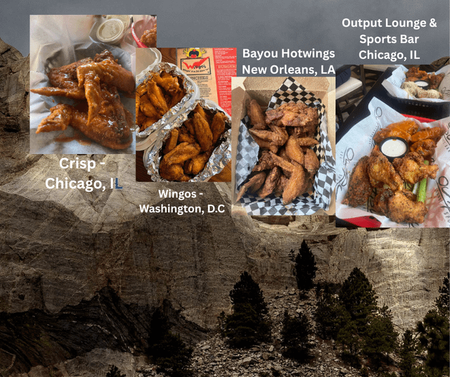I was thinking recently it might be cool to post about my "Mt. Rushmore" of wings, meaning my four favorite wing places across the US. It might be tempting to try and make these four what you consider to be the top 4 wing places in US, but that is highly subjective (although, I'm sure many of our frequent flyers would top that kind of list such as Bar Bill, 9/11, etc.) Rather, I'd love to hear your favorite four wing places in the US, based strictly on your own personal criteria. I'm also hoping to crowd source more spots for my own enjoyment. Here's my four and the reasons why I picked them: