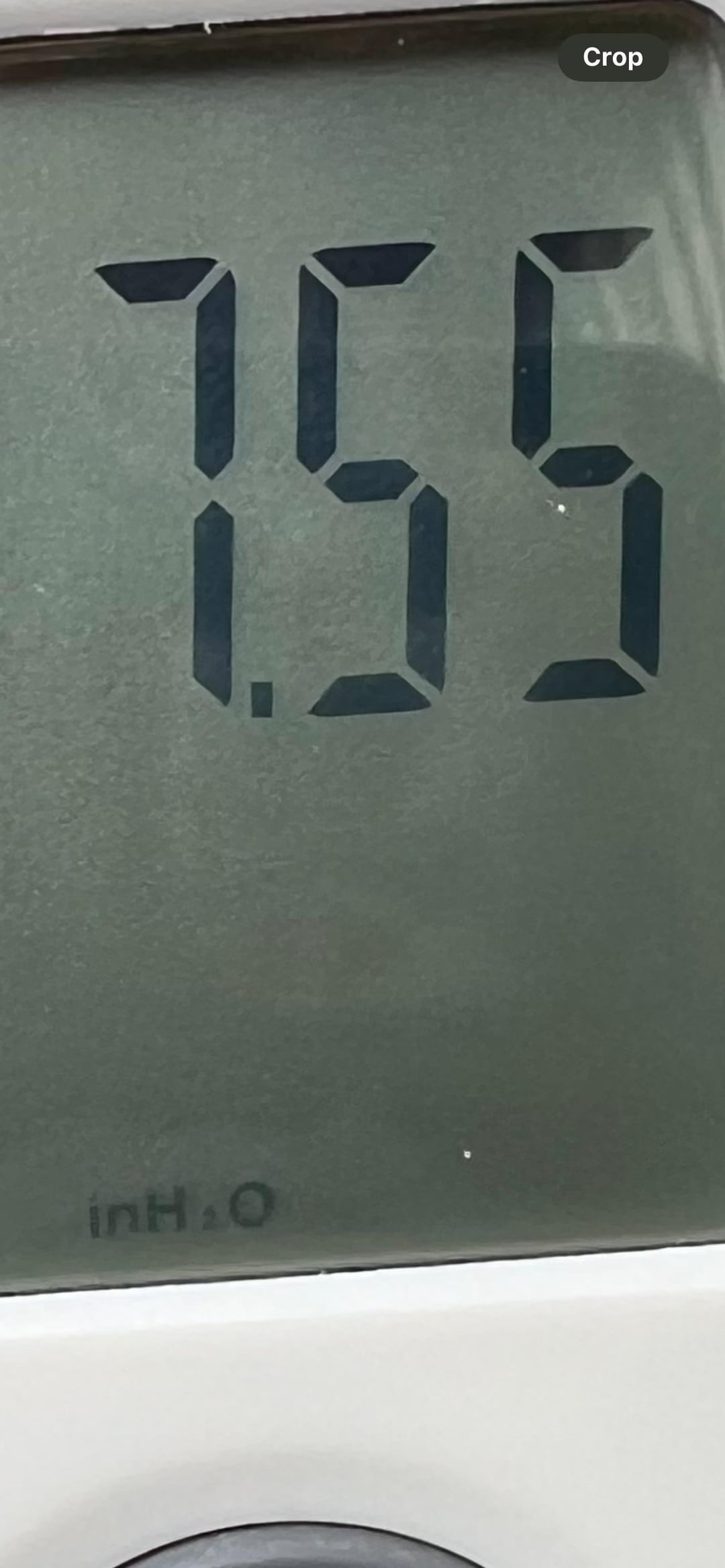 My gas pressure is 7.55 inches of h2o with a 20k btu load running.
