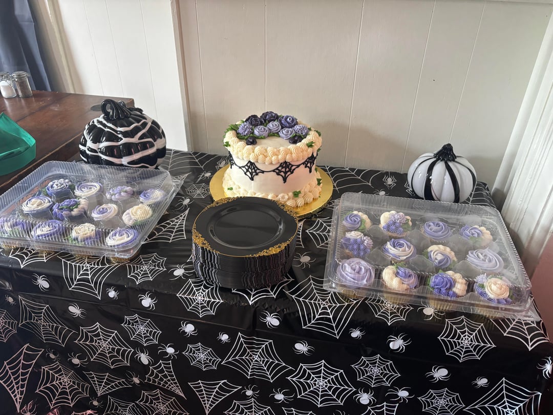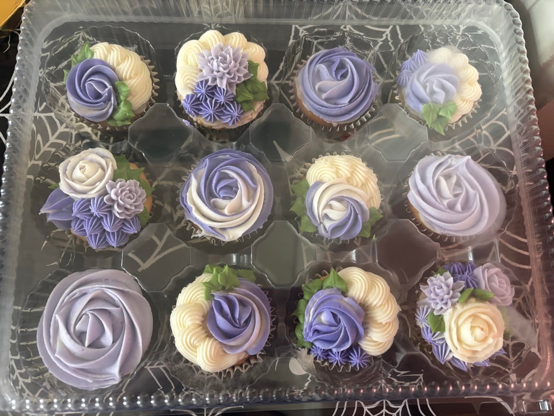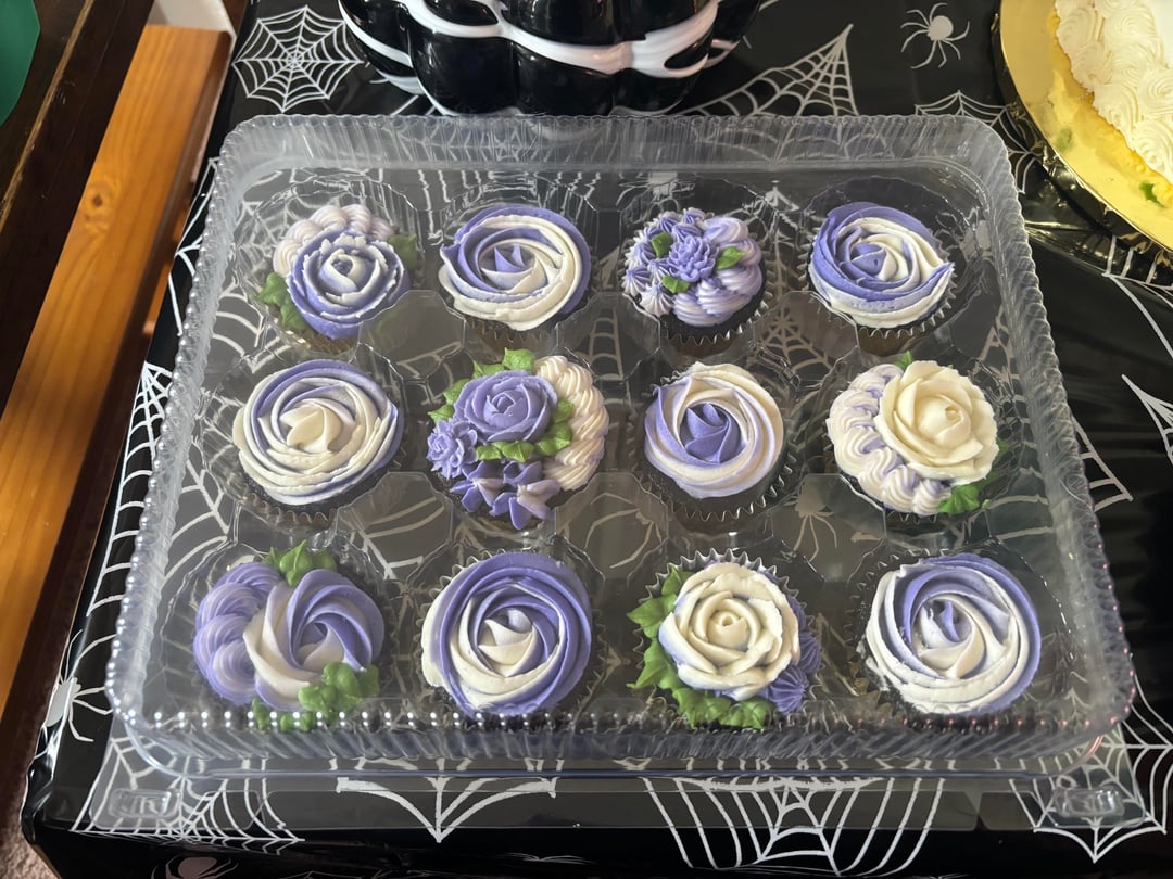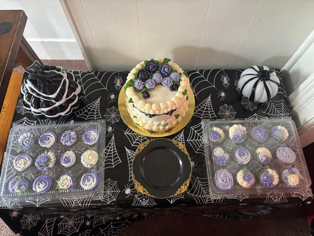 It was a small-ish potluck style wedding and when they said no one had volunteered to bring a cake I knew what I had to do 🫡 main cake was a yellow butter cake with lemon curd filling, that is also what half the cupcakes are, the other half of the cupcakes are chocolate coffee cake with chocolate mousse filling. I love hobby baking and decorating so much; it is always so magical when you get to share your creation with others! 🥰 also shout out to Michaels craft store for having these super convenient cupcake trays!