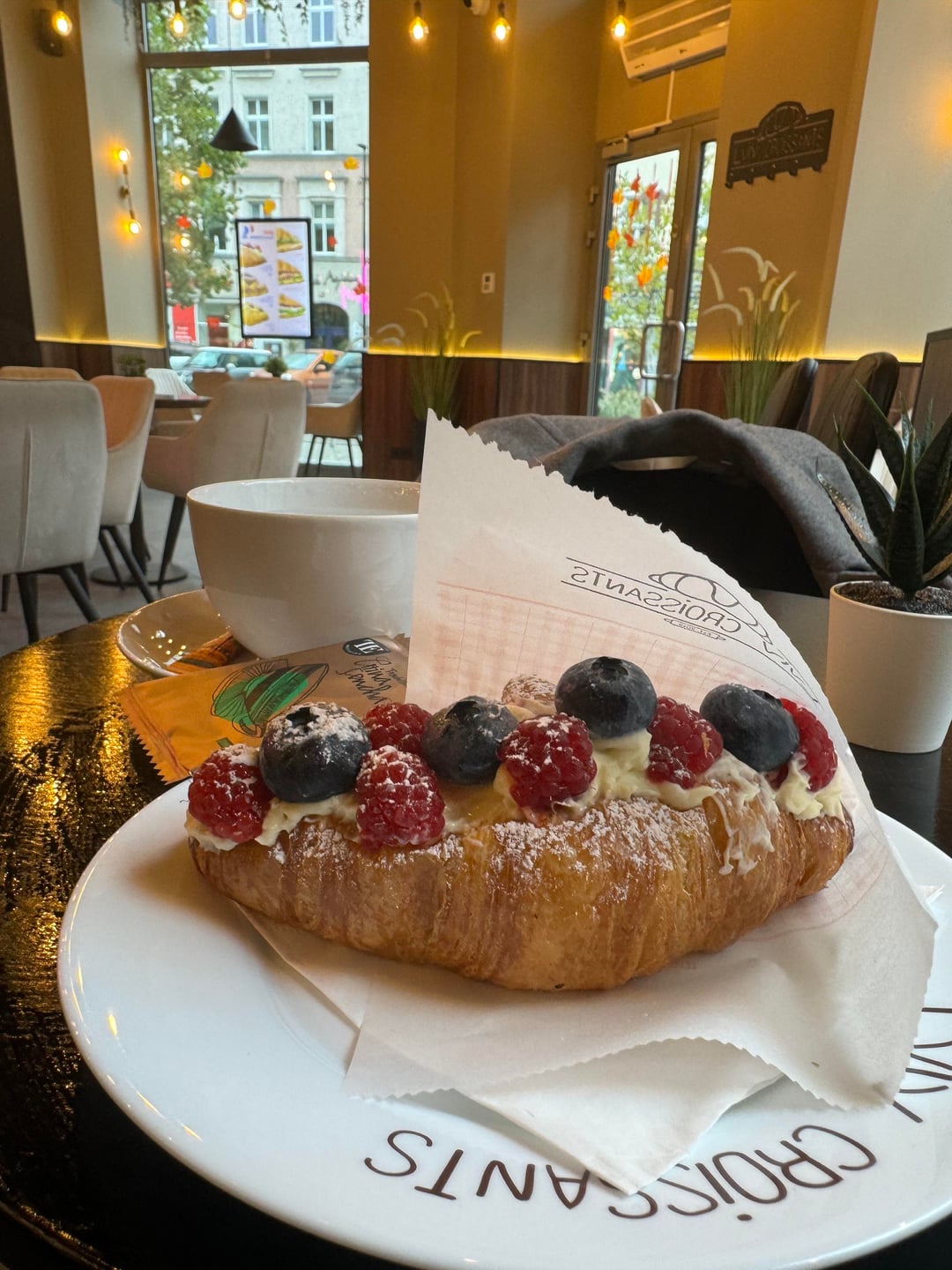 A breakfast that feels like a hug โ croissant, fruit, whipped cream, and tea filling the air with magic๐๐by komisarsimona Dining and Cooking