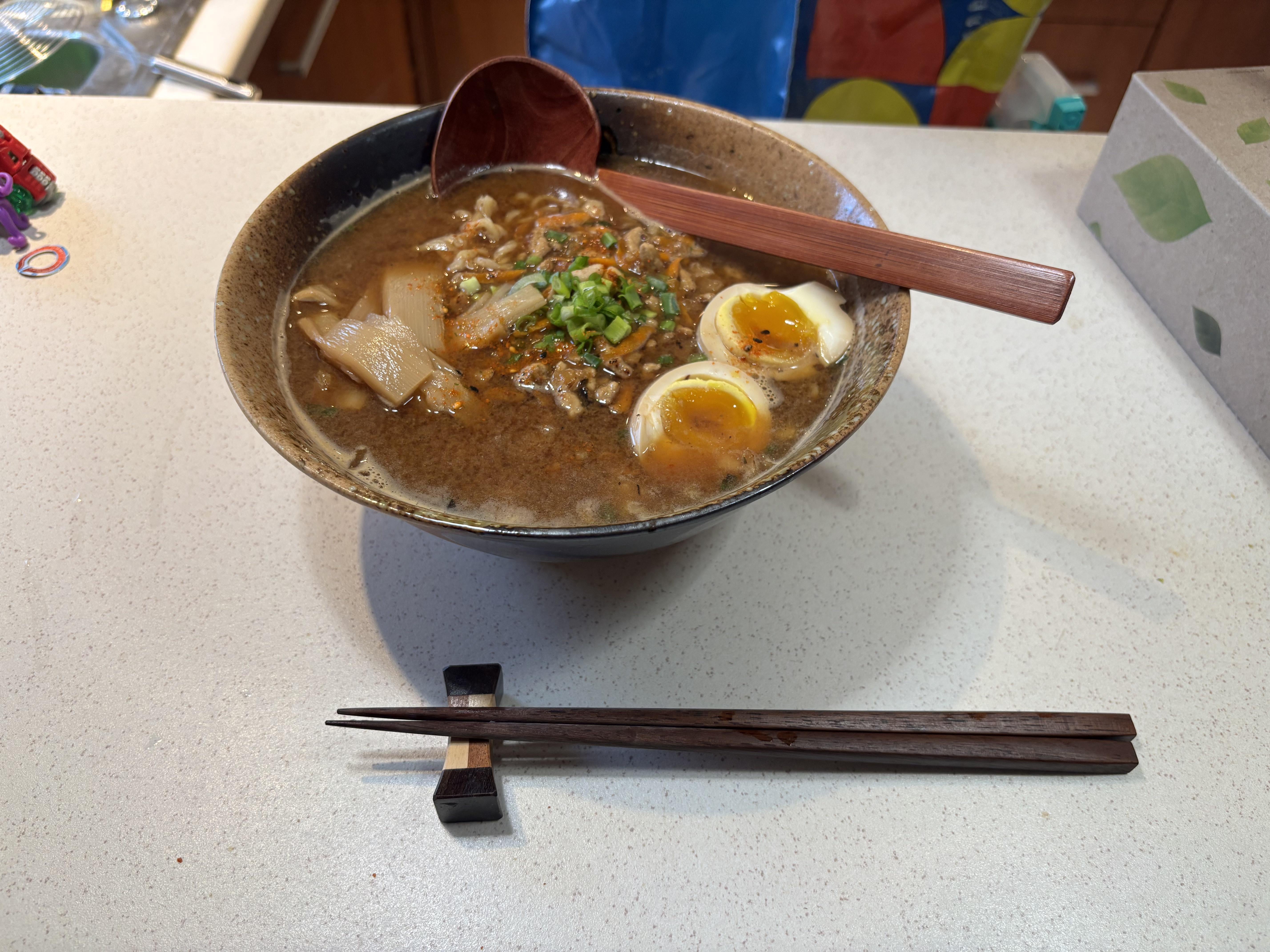 Chicken and duck chintan with red and white miso tare.Added some spice with shichimi togarashi. by Ressetkk Dining and Cooking